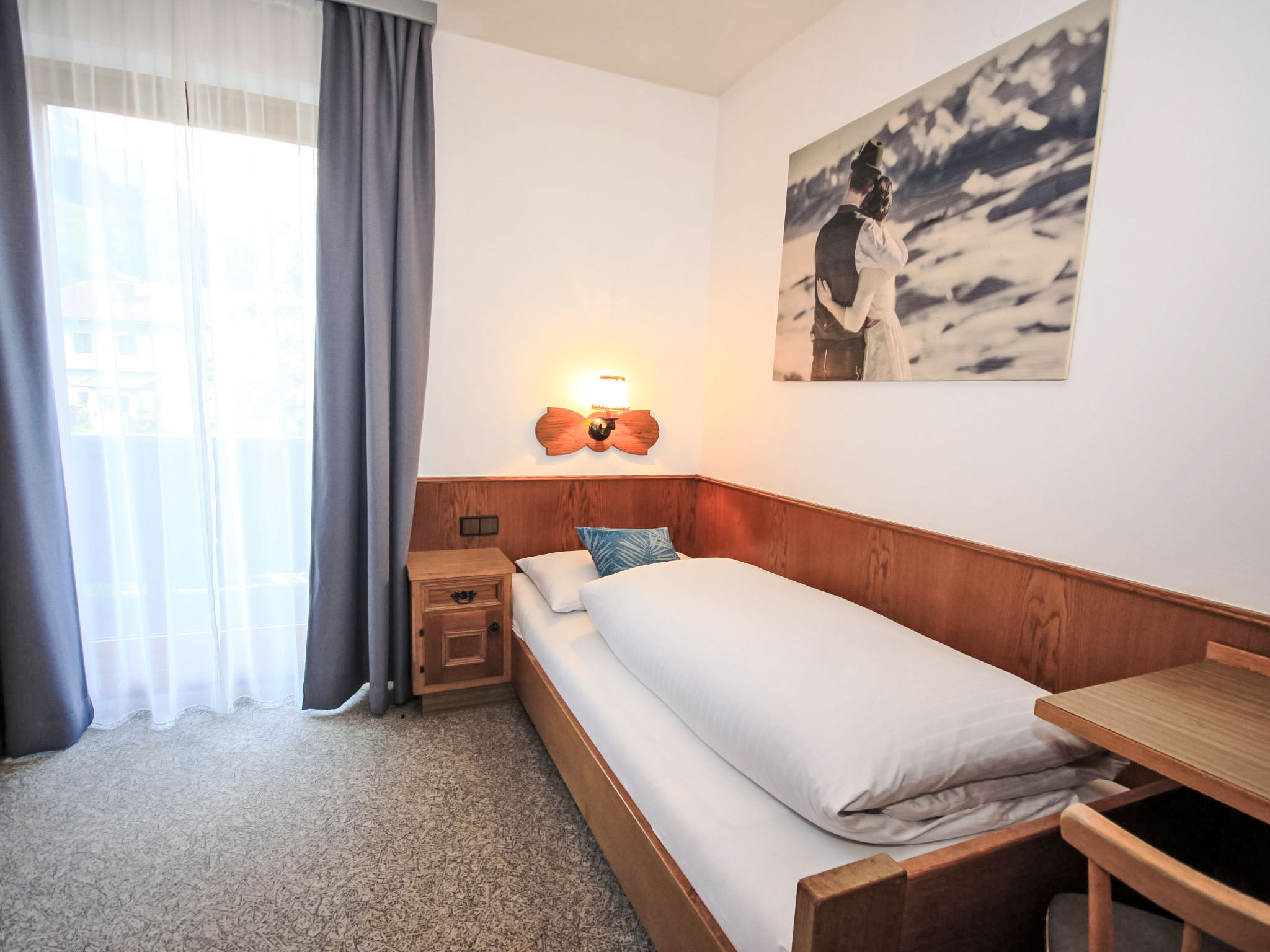 Grande maison individuelle "Chalet Alpin", de 2 étages, année de construction 1973. En bordure de la localité, à 800 m du centre de Kaprun, situation tranquille, ensoleillée, à 5.7 km du lac, à 350 m du domaine skiable. A usage privé: terrain à l'état naturel 800 m2, jardin, pré. Infrastructures de la Maison: local pour les skis, chauffage central. Accès en voiture jusqu'à la maison. Magasins 750 m, magasin d'alimentation, supermarché 900 m, centre commercial 6 km, boulangerie 800 m, arrêt de bus 5 m, piscine 650 m, piscine couverte 2.4 km, centre thermal "Tauern Spa" 2.4 km, baignade en lac 5.7 km, lac Zeller See 6.6 km. Terrain de golf (18 trous) 5.4 km, télésiège 1.2 km, remontées mécaniques 1.2 km, pistes de ski 1.2 km, location de ski 1 km. Arrêt du ski-bus 5 m, école de ski, école de ski d'enfants, jardin d'enfants (hiver) 900 m, piste de luge 1.2 km. Attractions à proximité: Stadt Salzburg. Les domaines skiables de renommée sont facilement accessibles: Maiskogel, Kitzsteinhorn, Areithbahn. Les lacs connus sont facilement accessibles: Zeller See. Le propriétaire ne tolère pas la sur-occupation, même pour des bébés. 10 personnes + un lit enfant sont acceptés.