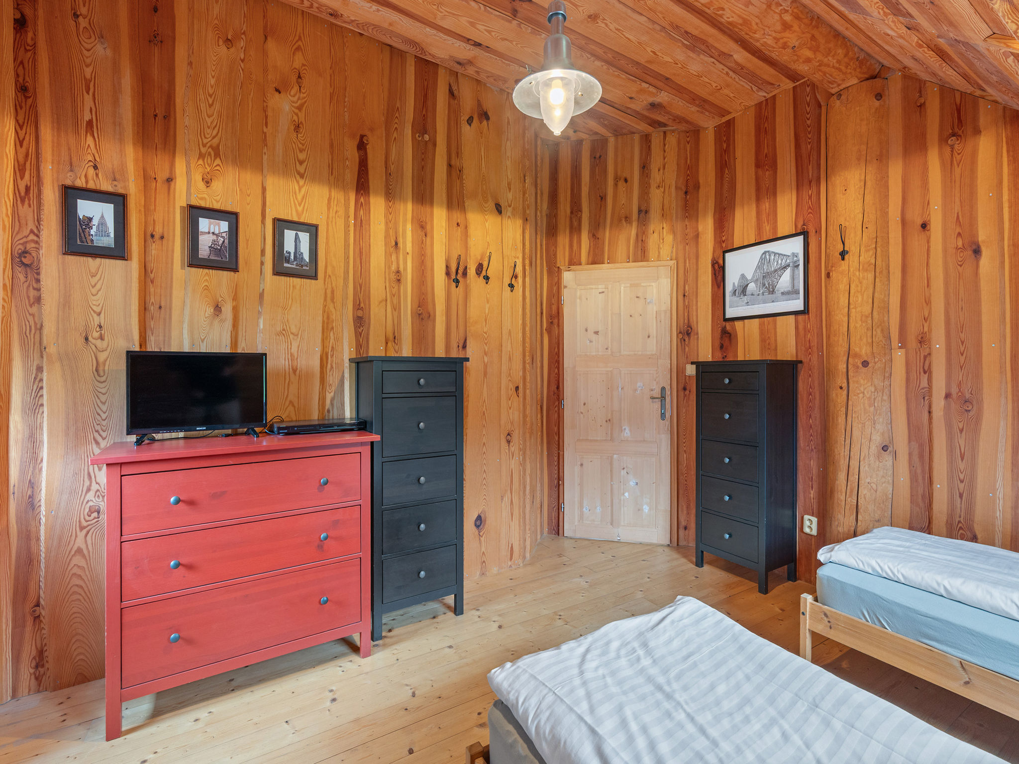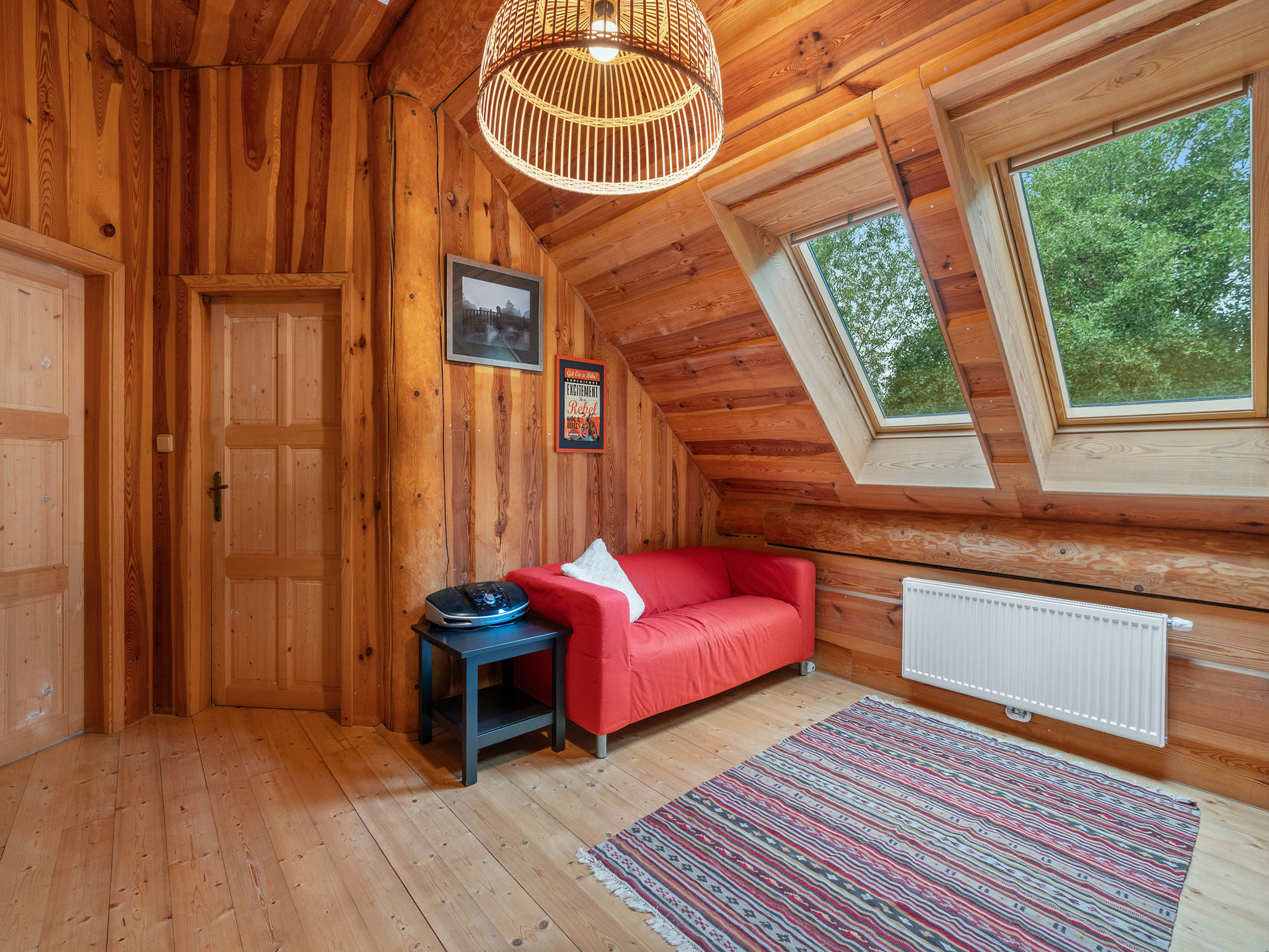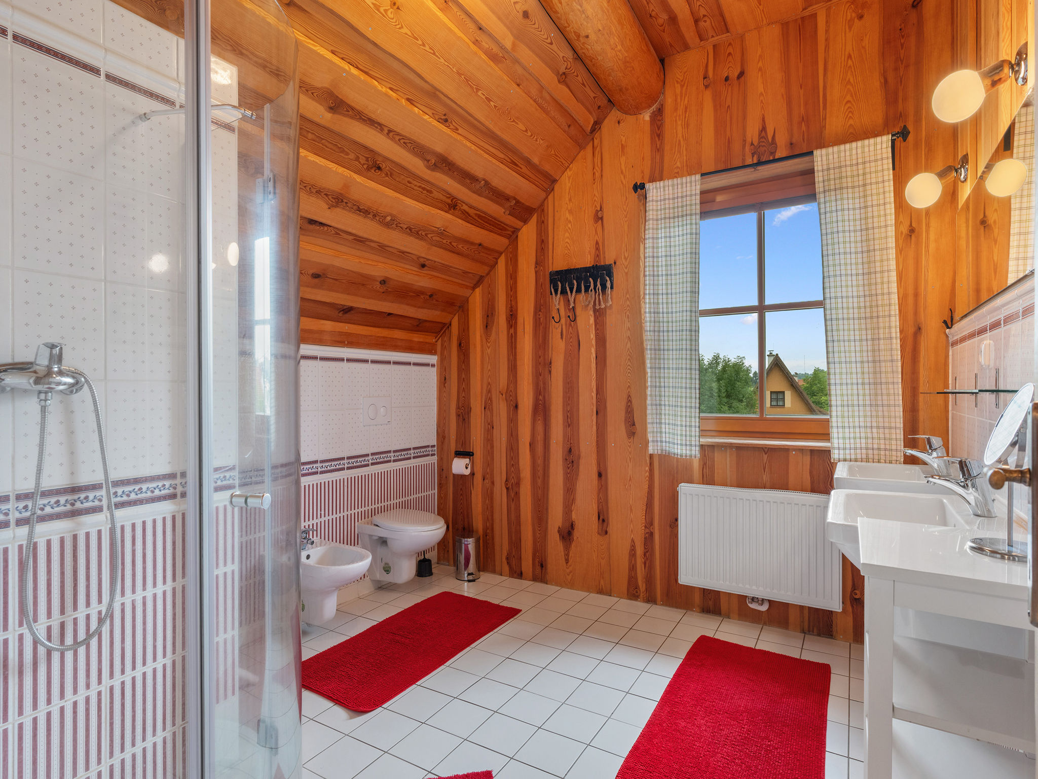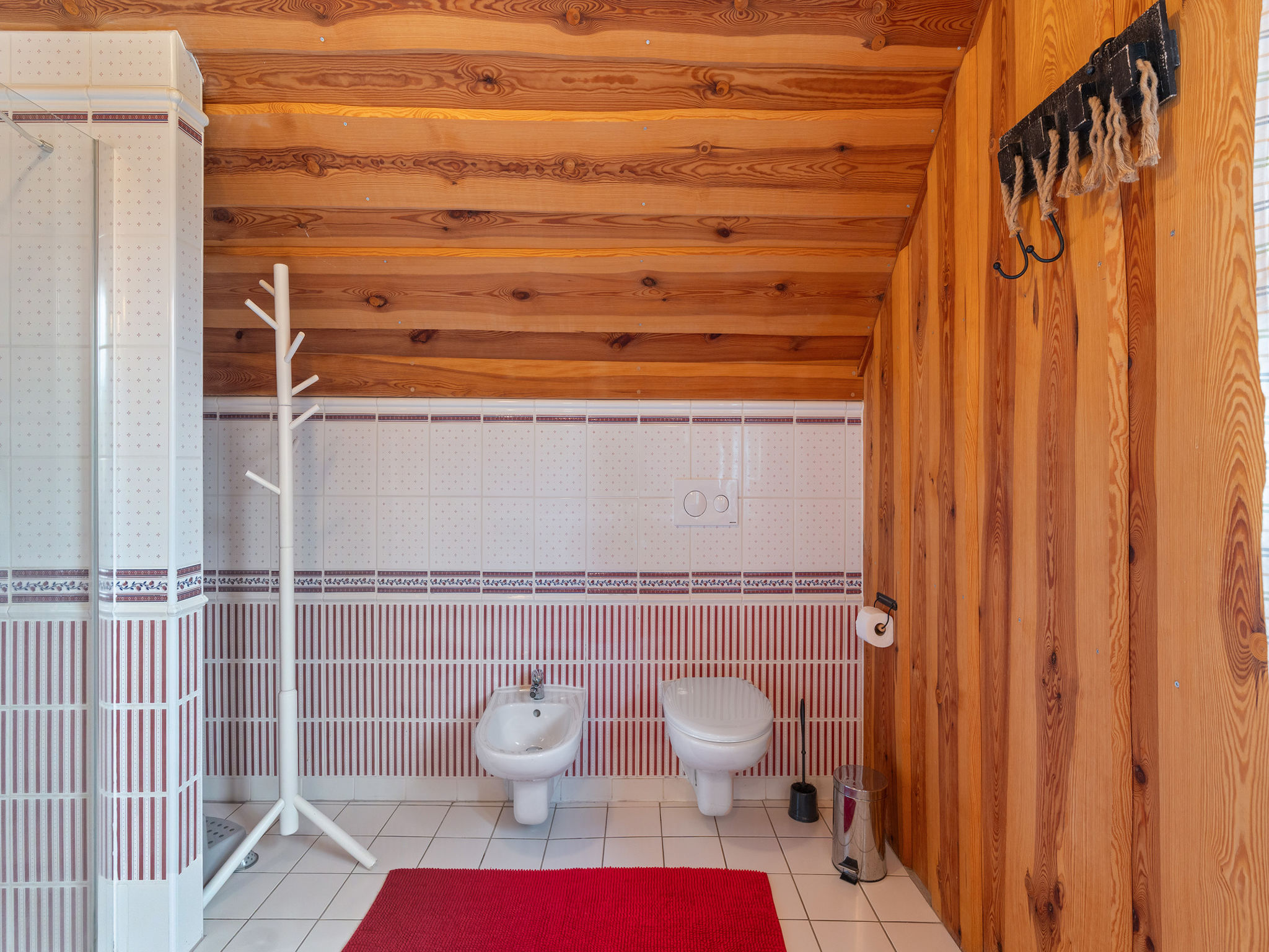 Chalet 5 pièces 280 m2 sur 2 niveaux. Spacieux, mansardé, aménagement confortable et de bon goût: entrée. Pièce en enfilade. Grand séjour/salle à manger avec 2 divans-lits, poêle suédois, TV (satellite), écran plat, radio, lecteur CD et DVD. Sortie sur la véranda. 1 chambre avec 2 lits. Cuisine ouverte (four, lave-vaisselle, 4 plaques vitrocéramiques, grille-pain, bouilloire électrique, micro-ondes, congélateur, gril, cafetière électrique, four à vapeur) avec bar, table pour les repas. Douche/WC, bidet. À l'étage supérieur: salon, mansardée avec radio et lecteur CD. 2 chambres, mansardées, chaque chambre avec: 3 lits, TV (satellite) et écran plat. 1 chambre, mansardée avec 2 lits gigognes (2 pers.), TV (satellite) (écran plat). Douche/WC, double vasque. Chauffage électrique. Veuillez noter: adapté(e) aux familles. Maximum 1 animal/ chien autorisé. Détecteur de fumée, extincteur.