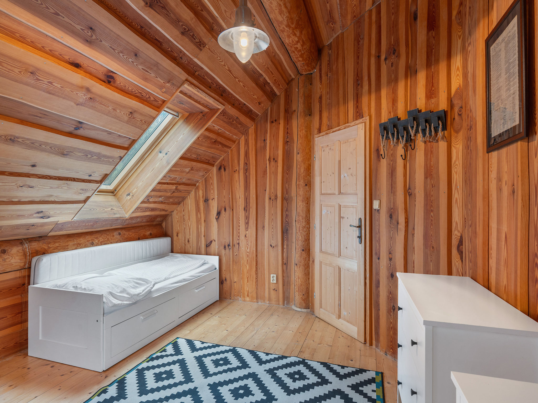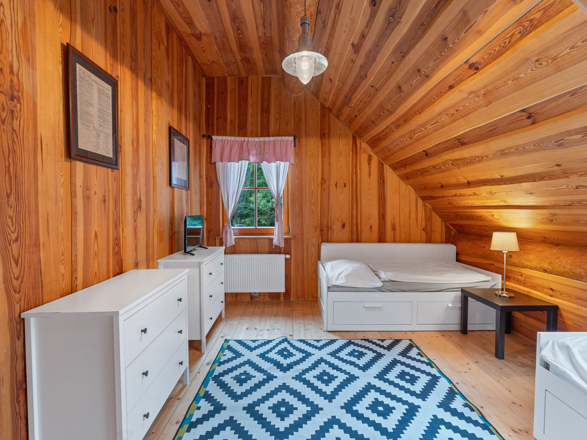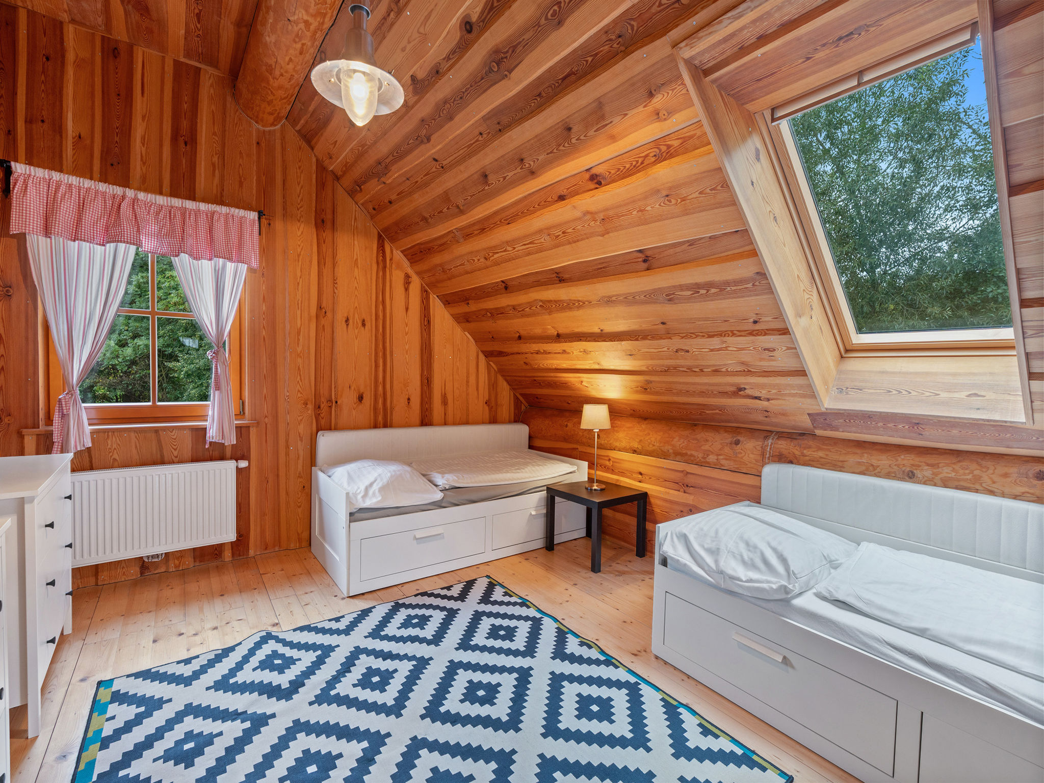 Chalet 5 pièces 280 m2 sur 2 niveaux. Spacieux, mansardé, aménagement confortable et de bon goût: entrée. Pièce en enfilade. Grand séjour/salle à manger avec 2 divans-lits, poêle suédois, TV (satellite), écran plat, radio, lecteur CD et DVD. Sortie sur la véranda. 1 chambre avec 2 lits. Cuisine ouverte (four, lave-vaisselle, 4 plaques vitrocéramiques, grille-pain, bouilloire électrique, micro-ondes, congélateur, gril, cafetière électrique, four à vapeur) avec bar, table pour les repas. Douche/WC, bidet. À l'étage supérieur: salon, mansardée avec radio et lecteur CD. 2 chambres, mansardées, chaque chambre avec: 3 lits, TV (satellite) et écran plat. 1 chambre, mansardée avec 2 lits gigognes (2 pers.), TV (satellite) (écran plat). Douche/WC, double vasque. Chauffage électrique. Veuillez noter: adapté(e) aux familles. Maximum 1 animal/ chien autorisé. Détecteur de fumée, extincteur.