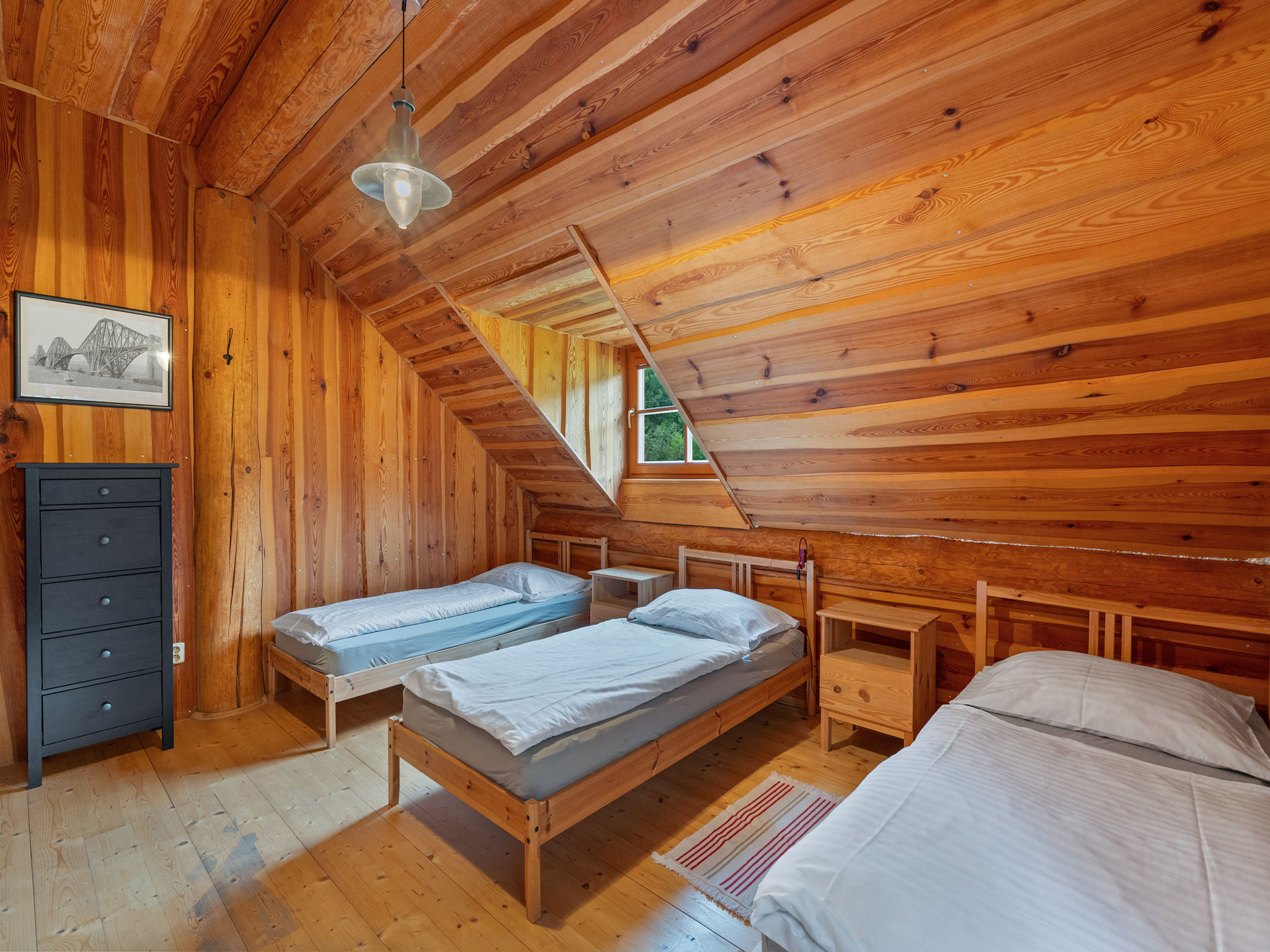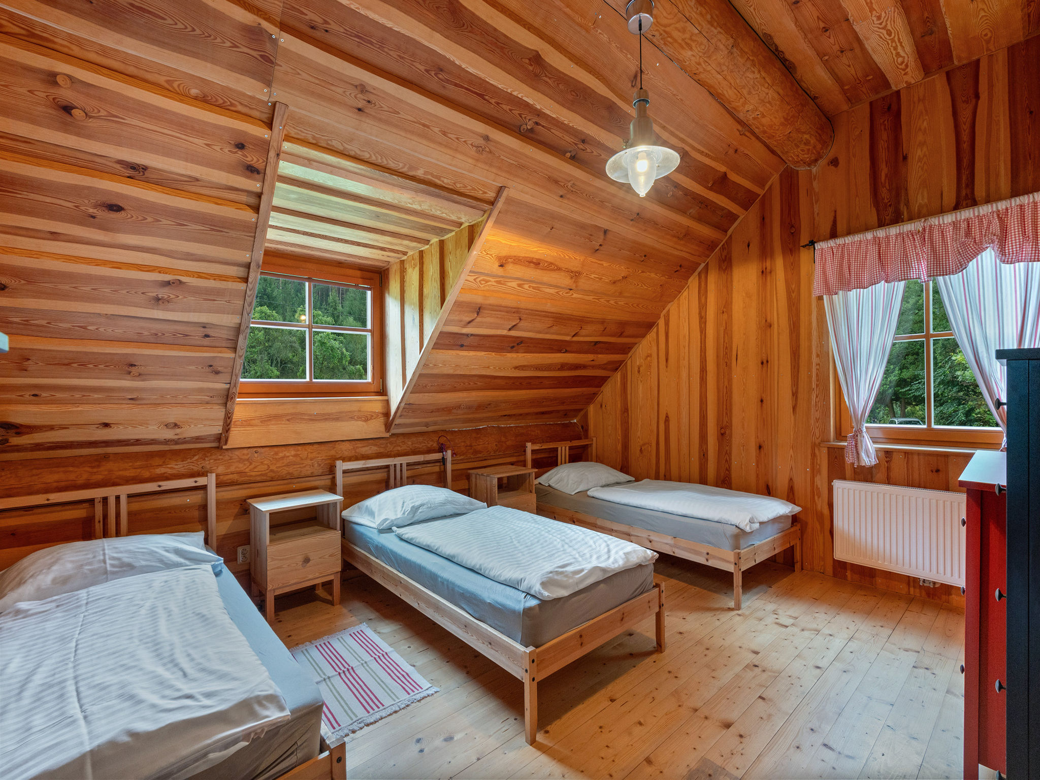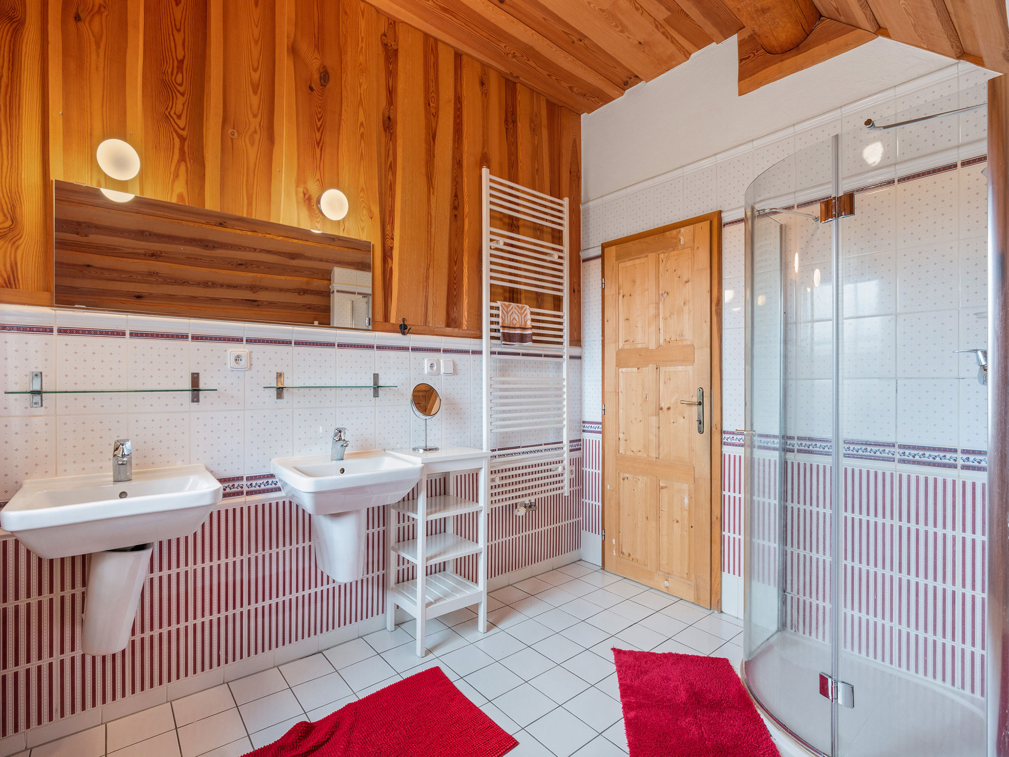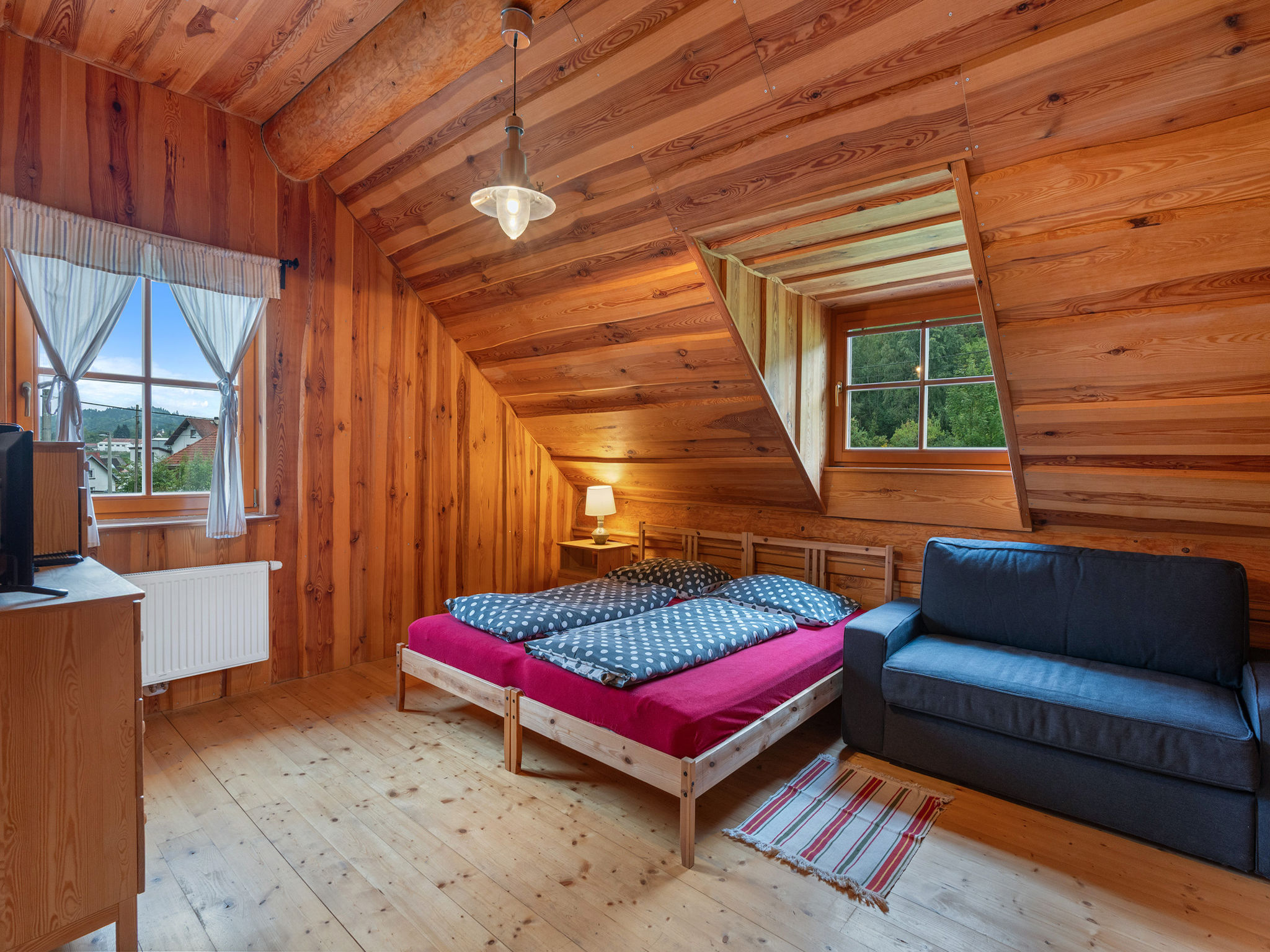 Chalet 5 pièces 280 m2 sur 2 niveaux. Spacieux, mansardé, aménagement confortable et de bon goût: entrée. Pièce en enfilade. Grand séjour/salle à manger avec 2 divans-lits, poêle suédois, TV (satellite), écran plat, radio, lecteur CD et DVD. Sortie sur la véranda. 1 chambre avec 2 lits. Cuisine ouverte (four, lave-vaisselle, 4 plaques vitrocéramiques, grille-pain, bouilloire électrique, micro-ondes, congélateur, gril, cafetière électrique, four à vapeur) avec bar, table pour les repas. Douche/WC, bidet. À l'étage supérieur: salon, mansardée avec radio et lecteur CD. 2 chambres, mansardées, chaque chambre avec: 3 lits, TV (satellite) et écran plat. 1 chambre, mansardée avec 2 lits gigognes (2 pers.), TV (satellite) (écran plat). Douche/WC, double vasque. Chauffage électrique. Veuillez noter: adapté(e) aux familles. Maximum 1 animal/ chien autorisé. Détecteur de fumée, extincteur.