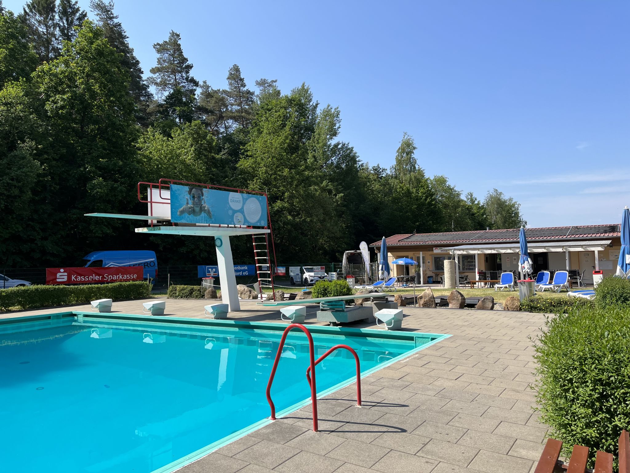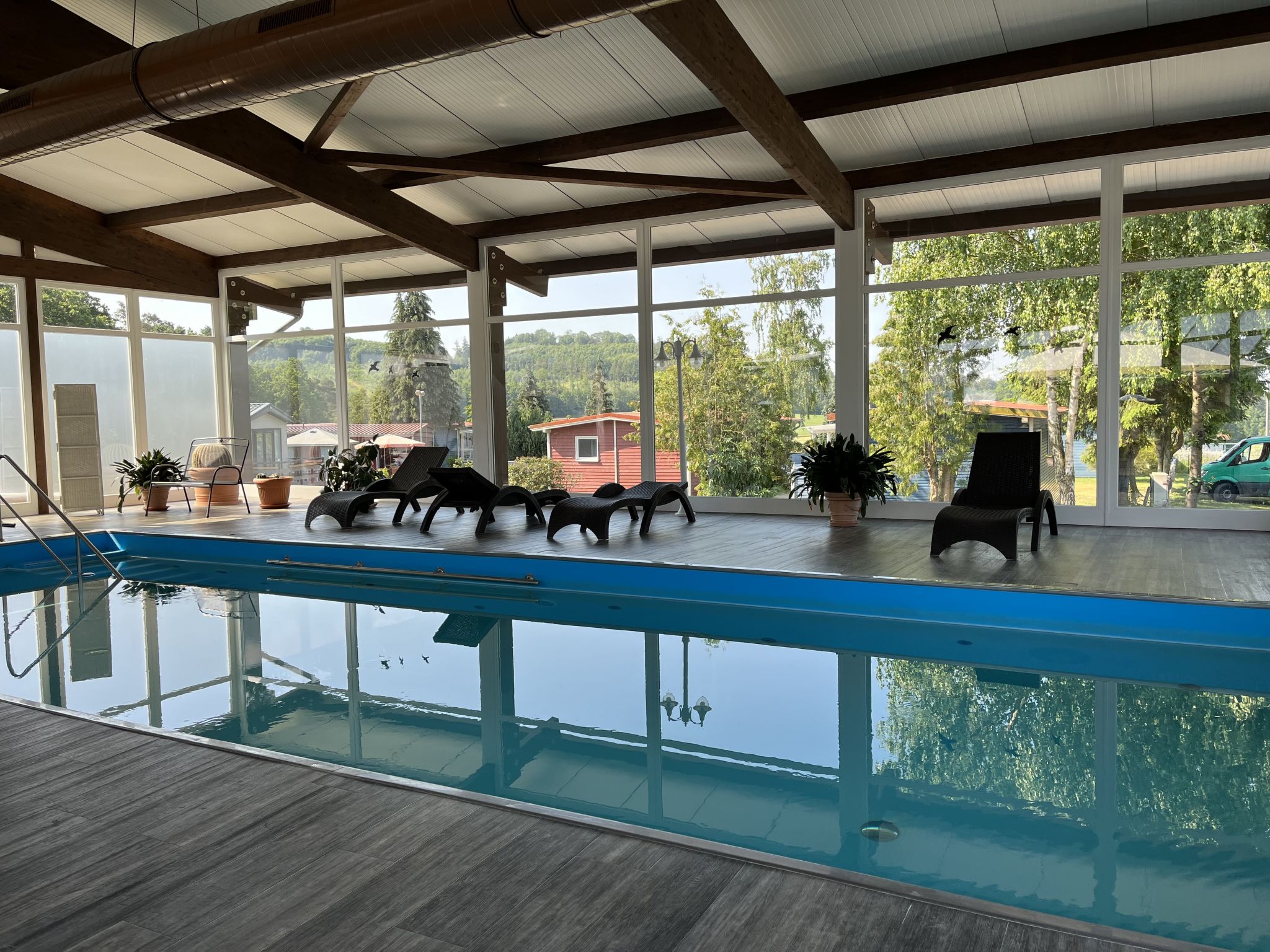 Bungalow "Erzeberg". À 800 m du centre de Balhorn, à 5 km du centre de Bad Emstal, à 20 km du centre de Kassel. En commun: terrain 40'000 m2 (clôturé), champ, piscine couverte (12 x 4 m, horaires d'ouverture de la piscine: 09:00-20:00, en sus). Terrain de pétanque. Infrastructures de la résidence: réception, restaurant, sauna (en sus). Lave-linge, sèche-linge (en commun, en sus). Place de parking. Borne de recharge électrique. Supermarché 1 km, arrêt de bus "Balhorn Distelberg" 2 km, piscine 1 km. Les gites, construits dans le style d'un bungalow, sont séparés sur le camping. La propriété est clôturée, il y a un portail d'entrée électrique.