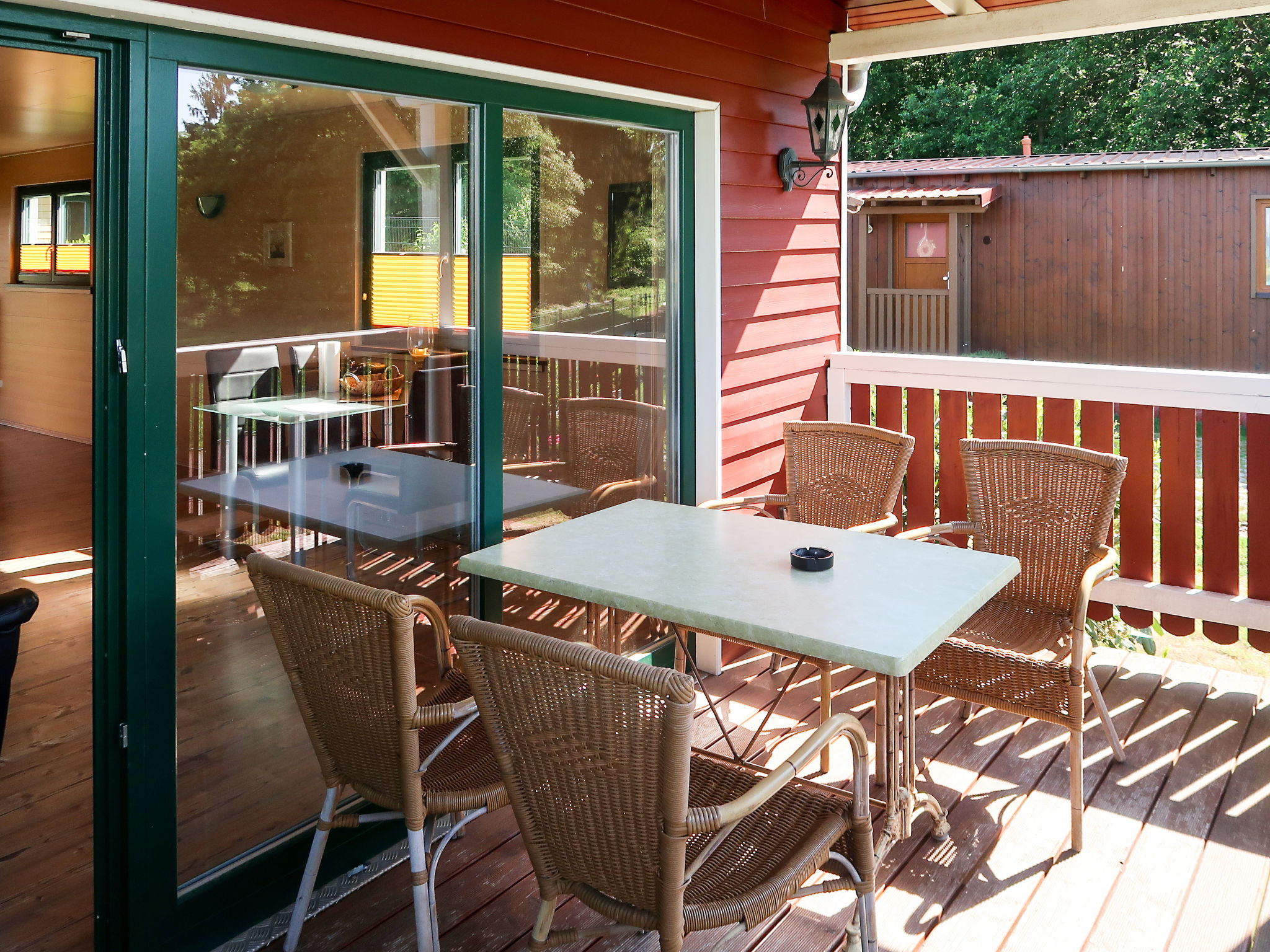 Bungalow 2 pièces 50 m2. Aménagement moderne: séjour/chambre à coucher avec 1 divan-lit double, table pour les repas, TV (satellite) et radio. Sortie sur la terrasse. 1 chambre avec 1 lit double. Cuisine ouverte (4 feux, grille-pain, bouilloire électrique, micro-ondes, cafetière électrique). Douche/WC. Chauffage au gaz. Terrasse. Meubles de terrasse. A disposition: chaise haute pour enfant, lit bébé. Internet (Connexion WIFI, gratuit). Veuillez noter: logement non-fumeur. Maximum 1 animal/ chien autorisé. Détecteur de fumée, extincteur. Le bungalow est librement accessible aux fauteuils roulants.