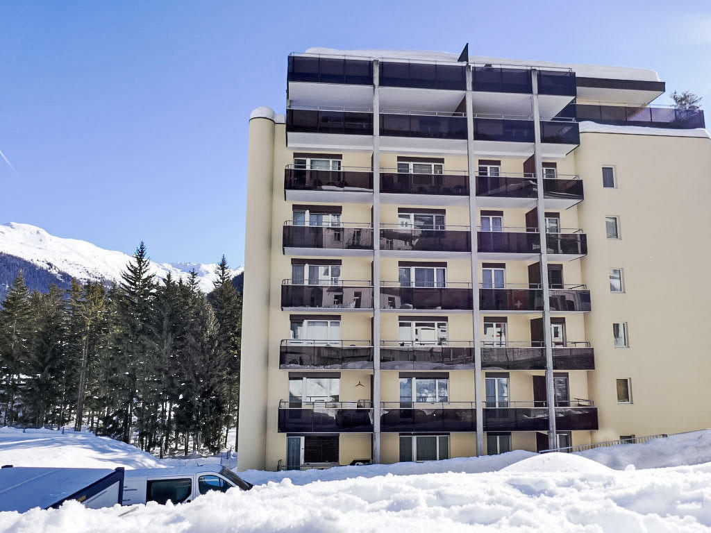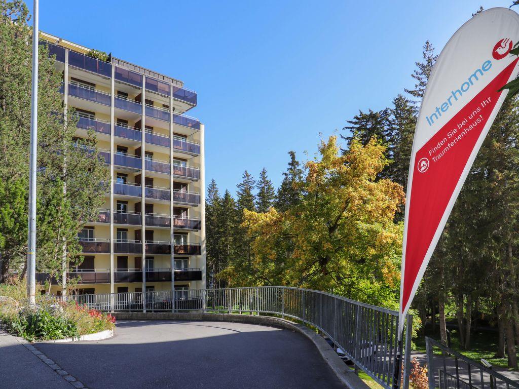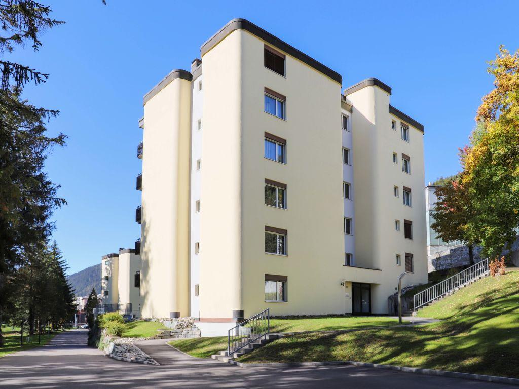 Davos-Platz: Petite résidence confortable « Allod-Park », 1’560 m au dessus du niveau de la mer. Au centre, à 700 m du centre de Davos Platz, situation centrale, tranquille. En commun: parc. Infrastructures de la Maison: réception, restaurant, bar, Connexion WIFI, ascenseur, local pour les skis, chauffage central, lave-linge (en sus), sèche-linge (en commun, en sus), étendoir à linge, appareil de séchage de chaussures à ski. Change de linge (suppl. en sus). Changementde linge de toilette (suppl. en sus). Nettoyage possible (en sus). Accès en voiture jusqu’à la maison. Place de parking (en sus), garage en commun (en sus). Dimension: hauteur 200 cm. Supermarché 800 m, centre commercial 400 m, restaurant 10 m, boulangerie 300 m, arrêt de bus « Kongresszentrum » 100 m, gare ferroviaire « Davos-Platz » 1.2 km, parc « Kurpark » 50 m, piscine, piscine couverte 200 m, plage aménagée 3.1 km, baignade en lac 2.7 km, lac Davoser See 2.7 km. Terrain de golf (18 trous) 2 km, ecole de surf 3.1 km, ecole de voile 3.1 km, tennis 4 km, tennis couvert 4 km, golf miniature 400 m, centre équestre 5 km, centre sportif 200 m, chemins de randonnées pédestres depuis la maison, piste cyclable 400 m, téléphérique 1.5 km, train de montagne 600 m, télésiège 1.8 km, télécabine 1.7 km, pistes de ski 1.7 km, location de ski 1.7 km. Arrêt du ski-bus 50 m, école de ski 1.5 km, école de ski d’enfants 1.5 km, ski de fond 1 km, patinoire 200 m, jeux pour enfants 50 m. Attractions à proximité: Kirchner Museum 50 m. Les domaines skiables de renommée sont facilement accessibles: Parsenn 1.5 km, Jakobshorn 1.2 km, Rinerhorn 8 km. Les lacs connus sont facilement accessibles: Davosersee 2.7 km. Veuillez noter: Déchargement et chargement des bagages à la location de vacances. Les locations peuvent également se différencier par l’emplacement, la taille et les caractéristiques du terrain. Les locations peuvent également se différencier par leur superficie, la disposition des pièces et leur équipement. Piste de luge Schatzalp-Davos. Places de parking sur demande : en été 35,00CHF/semaine, en hiver 70,00CHF/semaine. Wifi disponible près de la réception. Particularités : soirée raclette (ou fondue) hebdomadaire. Les repas peuvent être commandés au restaurant. Réservation des billets pour différentes manifestations.