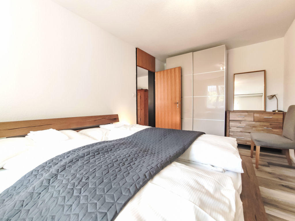 « Allod Park Haus A E02 », apt 2 pièces 55 m2, au rez-de-chaussée, situation sud. Aménagement rustique et plaisant: séjour/salle à manger avec TV (câblée) et radio. 1 chambre avec 1 lit double (2 x 90 cm). Cuisine (4 plaques de cuisson, four, lave-vaisselle, cafetière électrique, Capsules pour machine à café (Nespresso) (NON INCLUSES)). Bain/douche/WC. Chauffage. Moquette. Petit jardinet, situation sud. Belle vue sur le jardin. A disposition: Internet (Connexion WIFI, gratuit). Place de parking (en sus) près de la maison. Veuillez noter: logement non-fumeur. Maximum 1 animal/ chien autorisé.