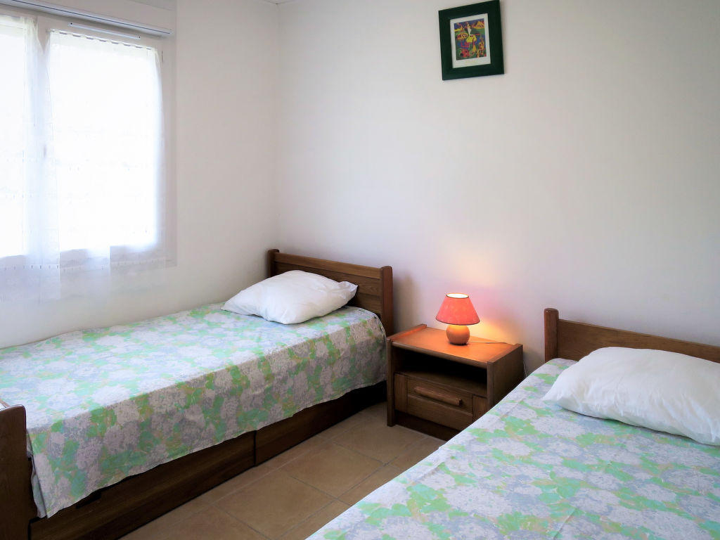 « Anne Marie », maison 3 pièces 50 m2. Aménagement fonctionnel et plaisant: séjour/salle à manger avec table pour les repas et TV (satellite) (écran plat), chaîne stéréo et DVD. Sortie sur la terrasse. 1 chambre avec 1 grand-lit (140 cm, longueur 190 cm). 1 chambre avec 2 lits (90 cm, longueur 190 cm). Cuisine ouverte (lave-vaisselle, 2 plaques vitrocéramiques, grille-pain, bouilloire électrique, congélateur, cafetière électrique, combiné micro-ondes). Douche, WC séparé. Chauffage électrique. Terrasse partiellement couverte. Meubles de terrasse, barbecue électrique, chaises longues (4). A disposition: lave-linge, chaise haute pour enfant, lit bébé (en sus). Veuillez noter: maison non-fumeur. Maximum 1 animal/ chien de petite taille autorisé. Détecteur de fumée.