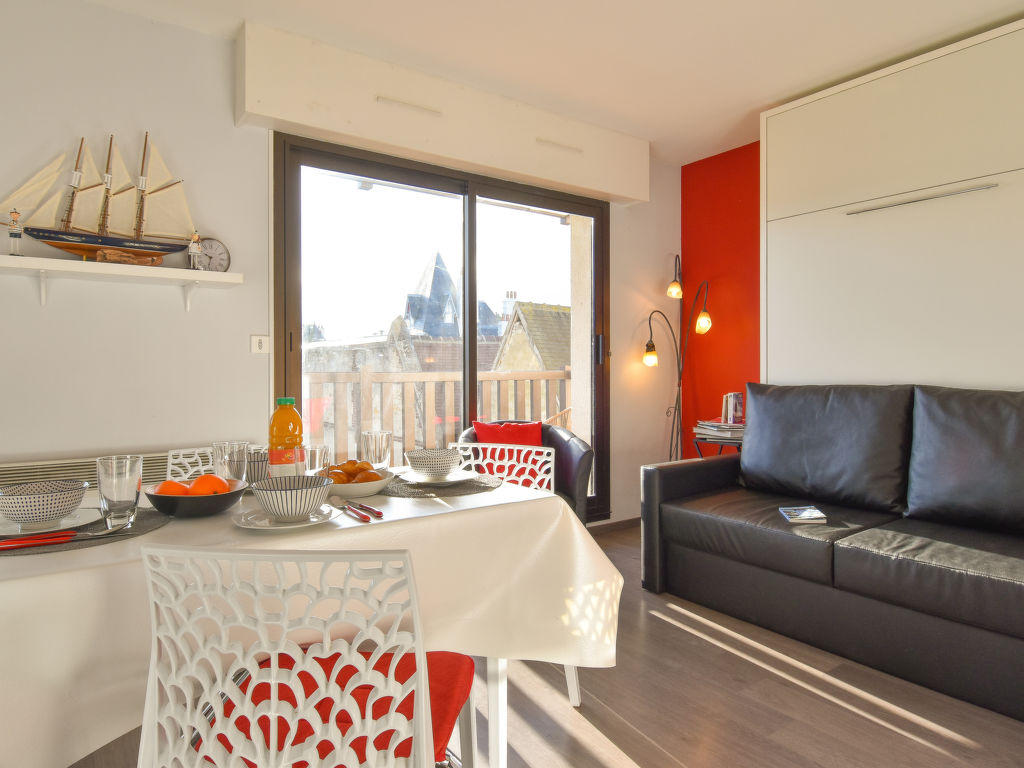 Deauville: Résidence « Baccara ». Excellente situation: centrale mais tranquille, à 450 m de la mer, à 450 m de la plage. Infrastructures de la résidence: ascenseur. (6 marches). Magasins 100 m, magasin d’alimentation 500 m, supermarché 1.3 km, restaurant 50 m, arrêt de bus « Franciscaines » 750 m, gare ferroviaire « Deauville-Trouville » 950 m, piscine couverte 500 m, centre thermal « Deauville » 500 m. Terrain de golf (18 trous) 3.2 km, tennis 350 m, centre équestre 350 m. Attractions à proximité: Centre International Deauville – CID 300 m, Hippodrome Deauville-La Touques 500 m, Mémorial de Caen 54 km, Plage du débarquement d’Arromanches 83 km. La remise des clés a lieu à l’agence Interhome de Deauville.