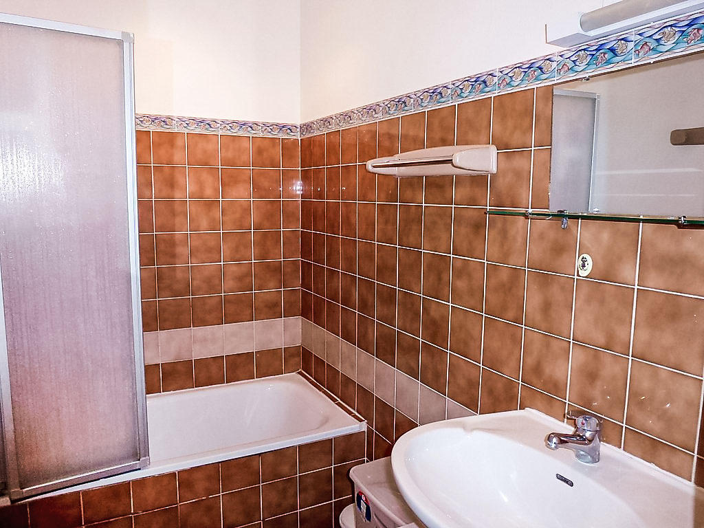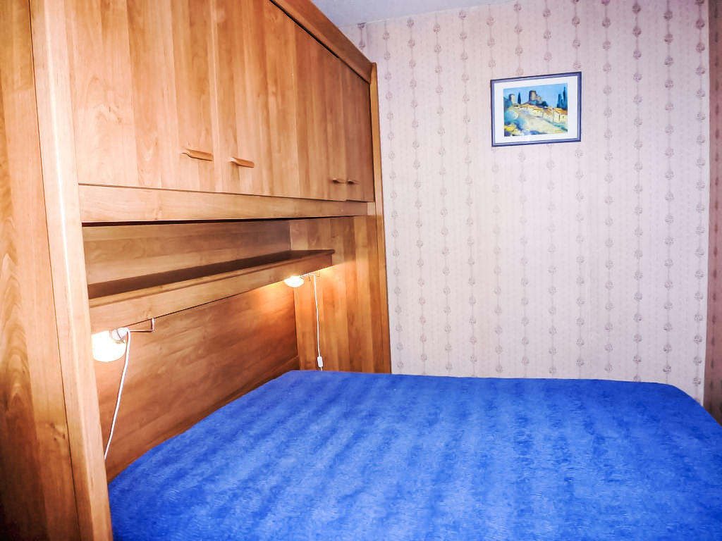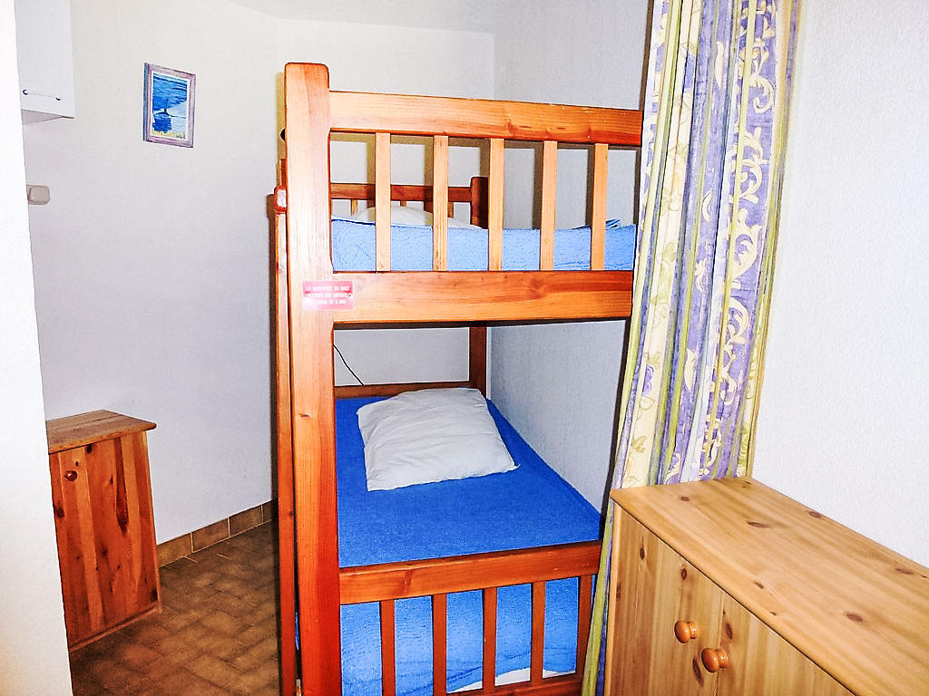 Apt 2 pièces 38 m2 au 1er étage. Séjour/salle à manger avec TV. Alcôve avec 1 x 2 lits superposés (90 cm, longueur 190 cm). 1 chambre avec 1 grand-lit (160 cm, longueur 200 cm). Coin cuisine (4 plaques de cuisson, four, micro-ondes). Salle de bains, WC séparé. Terrasse 5 m2, couverte. Meubles de terrasse. A disposition: lave-linge. Internet (Connexion WIFI, en sus). Place de parking. Veuillez noter: parking pour 1 petite voiture. 1 animal/ chien de petite taille autorisé. Détecteur de fumée. Au lieu d’une chambre fermée, des espaces de couchage sont situés dans une zone ouverte (galerie, alcôve…).