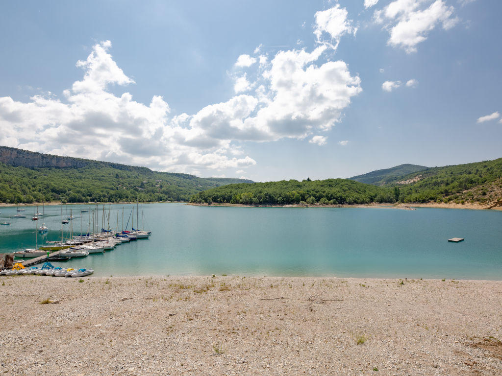 « Les Salles sur Verdon », apt 3 pièces 63 m2. Séjour/chambre à coucher avec 1 divan-lit double (140 cm), table pour les repas et TV (satellite). 1 chambre avec 2 lits (90 cm, longueur 190 cm). 1 chambre avec 1 grand-lit (140 cm, longueur 190 cm). Cuisine ouverte (4 plaques de cuisson, four, lave-vaisselle, bouilloire électrique, micro-ondes, congélateur, cafetière électrique). Salle de bains, WC séparé. Chauffage électrique. Terrasse 10 m2, couverte. Meubles de terrasse, chaises longues (2). Belle vue sur le lac et les alentours. A disposition: fer à repasser. Internet (Connexion WIFI, gratuit). Maximum 2 animaux/ chiens autorisés. Annonce d’un professionnel (art 155, IV du CGI)