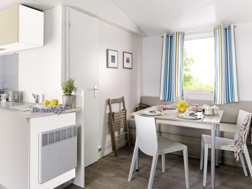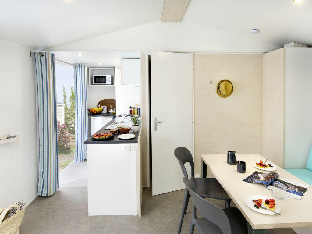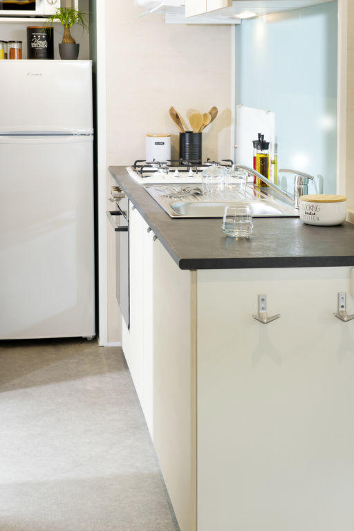 « Camping La Plage », 4 pièces mobil home 32 m2. Aménagement fonctionnel: séjour/salle à manger avec table pour les repas et TV. 1 chambre avec 1 grands-lits. 2 chambres, chaque chambre avec: 2 lits (80 cm). Coin cuisine (4 feux, micro-ondes, congélateur, cafetière électrique). Douche, WC séparé. Chauffage électrique, air-conditionné. Terrasse partiellement couverte. Meubles de terrasse. A disposition: chaise haute pour enfant, lit bébé jusqu’à 2 ans (en sus). Internet (Connexion WIFI, en sus). Maximum 1 animal/ chien autorisé.