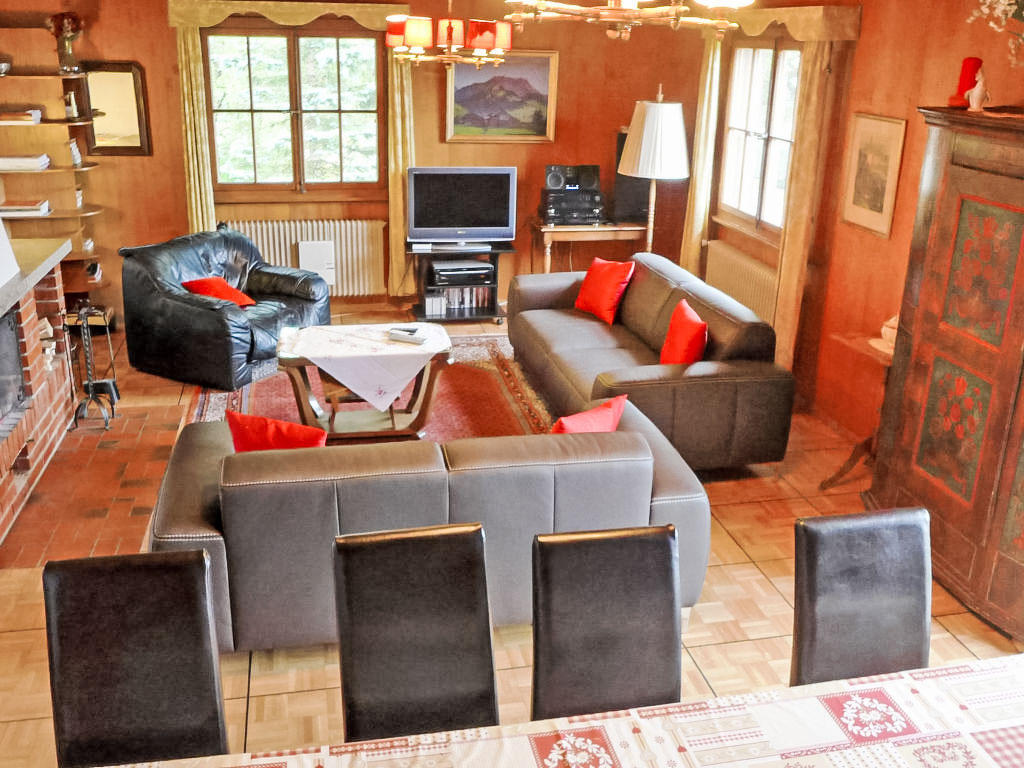 « Chalet Clairval », chalet 7 pièces 250 m2 sur 3 niveaux. Aménagement confortable et rustique: séjour/salle à manger avec cheminée, table pour les repas, TV (câblée), chaînes de TV internationales, chaîne stéréo, DVD et collection de DVD disponible. Sortie sur le balcon. 1 chambre avec 2 lits (90 cm, longueur 200 cm). Sortie sur le balcon. 1 chambre avec 2 lits (90 cm, longueur 200 cm). Cuisine (3 plaques de cuisson, four, lave-vaisselle, grille-pain, bouilloire électrique, micro-ondes, cafetière électrique, Capsules pour machine à café (Nespresso) (NON INCLUSES), appareil à raclette, service à fondue (fondue chinoise, fondue au fromage)) avec petite table pour les repas. Bain/WC. À l’étage inférieur: séjour avec coin repas, bar et radio. 1 chambre double avec 1 lit double (160 cm, longueur 200 cm). Douche/WC. Chauffage au fuel. À l’étage supérieur: 1 chambre avec 2 lits (90 cm, longueur 200 cm). 1 chambre avec 1 lit double (160 cm, longueur 200 cm), lavabo. WC séparé. Grand balcon, grand jardin. Meubles de terrasse, mobilier de balcon, chaises longues (9). Très belle vue sur les montagnes, les alentours et la localité. A disposition: lave-linge, sèche-linge, chaise haute pour enfant, lit bébé jusqu’à 3 ans, sèche-cheveux. Internet (Connexion WIFI, gratuit). Veuillez noter: adapté(e) aux familles. Logement non-fumeur. Maximum 2 animaux/ chiens autorisés.
