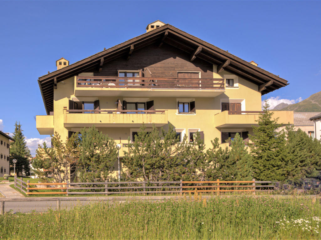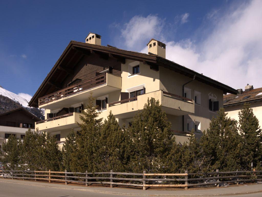Celerina: Immeuble « Chesa Stè », de 3 étages, année de construction 1970. En bordure de la localité Celerina, dans un quartier résidentiel, à 1.1 km du domaine skiable. Infrastructures de la Maison: chauffage central, lave-linge (en sus), sèche-linge (en commun), étendoir à linge. En hiver 4×4 recommandé. Garage en commun. Magasin d’alimentation 600 m, restaurant 140 m, boulangerie 600 m, location de bicyclettes 350 m, arrêt de bus « Cresta Palace » 400 m, gare ferroviaire « Celerina » 650 m, piscine couverte 4.4 km. Ecole de surf 9 km, tennis 600 m, tennis couvert 4.7 km, golf miniature 4.4 km, centre équestre 4.9 km, piste cyclable 500 m, téléphérique 1.1 km, train de montagne 1.1 km, pistes de ski 1.1 km. Arrêt du ski-bus 140 m, école de ski 1.1 km, école de ski d’enfants 1.1 km, piste de luge 2.1 km, ski de fond 1.2 km, patinoire 300 m, jeux pour enfants 500 m. Attractions à proximité: Olympia Bob Run mit Bobmuseum 2.4 km, Kirche San Gian 1.2 km, Segantini Museum 3.8 km. Les domaines skiables de renommée sont facilement accessibles: Corviglia 1.1 km, Corvatsch – Furtschellas 10 km, Diavolezza – Lagalb 16 km. Les lacs connus sont facilement accessibles: St. Moritzer See 2.4 km, Silvaplana See 9 km, Silser See 13 km. Région de randonnées: Stazerwald & Stazer See, Corviglia Piz Nair, Muottas Muragls. Veuillez noter: sans ascenseur. Déchargement et chargement des bagages à la location de vacances.