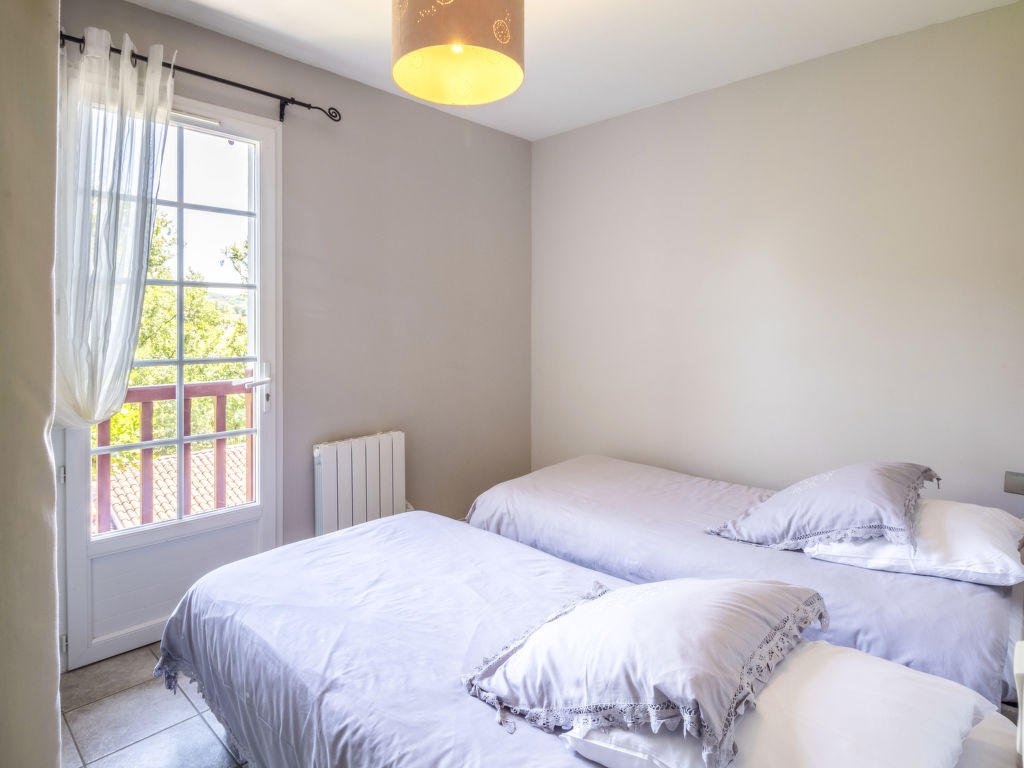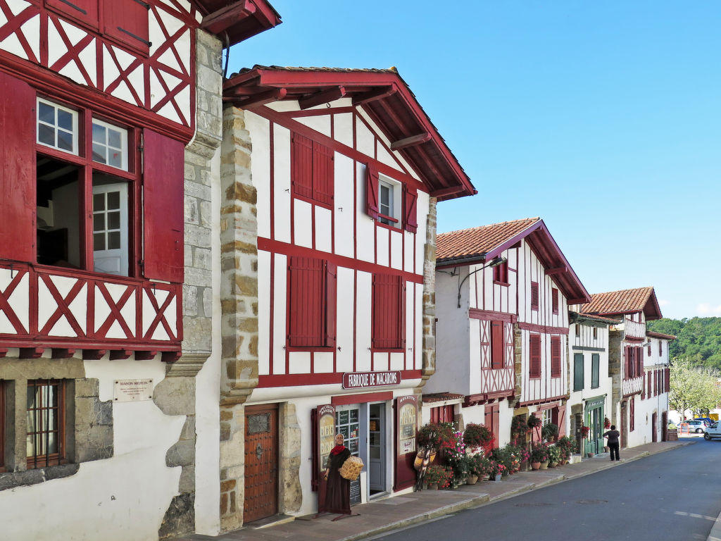 Complexe de vacances « Collines Iduki », de 2 étages. 36 appartements dans la résidence. À 500 m du centre de La Bastide-Clairence, à 8.5 km du centre de Hasparren, à 25 km du centre de Bayonne, sur un versant, à 35 km de la mer, à 35 km de la plage, à 100 m de la rivière. En commun: terrain 3 ha avec plantes et arbres, jardin naturel, piscine chauffée (12 x 6 m, profondeur 80 – 120 cm, disponibilité saisonnière: 01.Mai. – 30.Sep.). Douche extérieure, ping-pong, terrasse. Infrastructures de la résidence: réception, restaurant, baby foot, lave-linge, sèche-linge (en commun, en sus). Place de parking (nombre de places limité). Borne de recharge électrique. Magasin d’alimentation 500 m, supermarché 9 km, restaurant 500 m, arrêt de bus « Bourg » 5 km, plage de sable « Biarritz, Anglet » 35 km. Attractions à proximité: Joyeuse River (canoe possible) 100 m. Veuillez noter: La photo ne montre qu’un exemple de location de vacances.