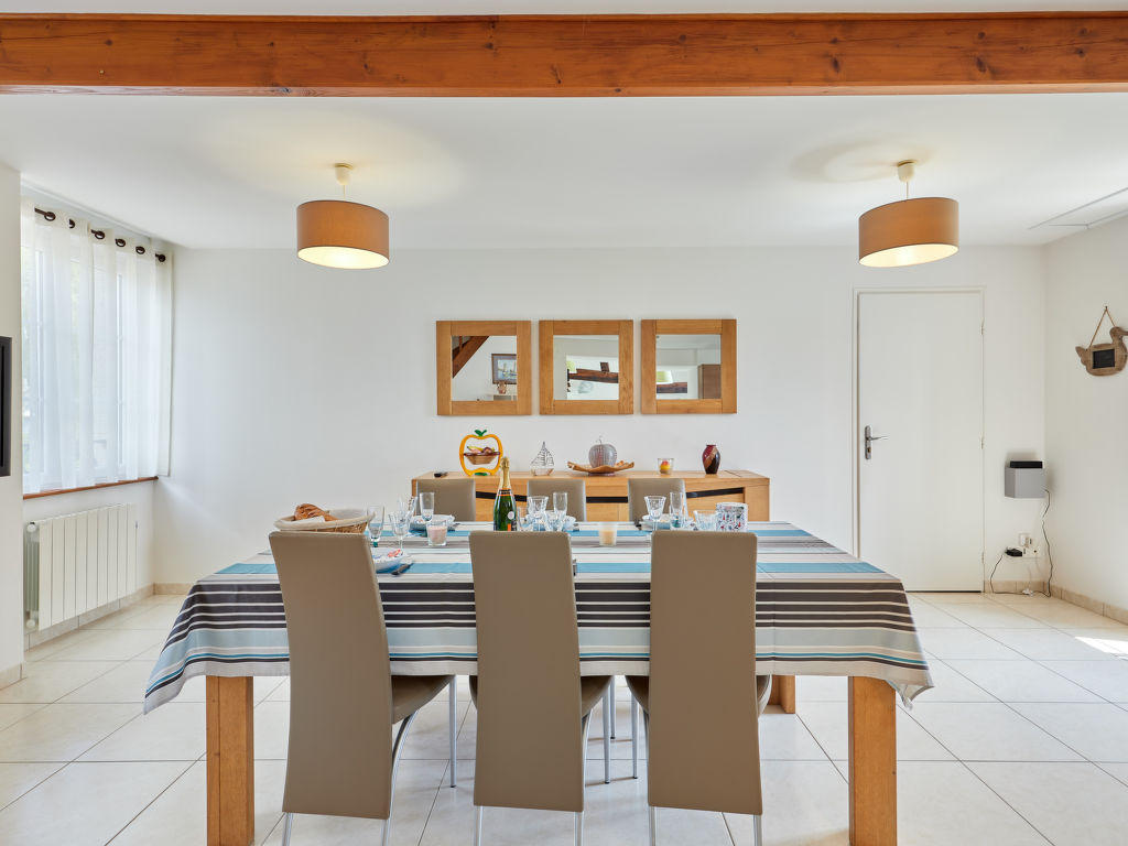 « Domaine 2 », maison mitoyenne 4 pièces 120 m2 sur 2 niveaux. Aménagement confortable et agréable: séjour/salle à manger avec cheminée (uniquement à titre de décoration), TV (écran plat). Sortie sur la terrasse. 2 chambres (140 cm, longueur 190 cm). Cuisine ouverte (4 plaques de cuisson, four, lave-vaisselle, grille-pain, bouilloire électrique, cafetière électrique). WC séparé. Chauffage électrique. À l’étage supérieur: bain/WC. Terrasse. Meubles de terrasse, barbecue, chaises longues (4). A disposition: lave-linge, chaise haute pour enfant, lit bébé jusqu’à 3 ans. Internet (Connexion WIFI, gratuit). Place de parking près de la maison. Veuillez noter: 2 animaux/chiens de petite taille autorisés. Détecteur de fumée. Annonce d’un particulier (art 155, IV du CGI).