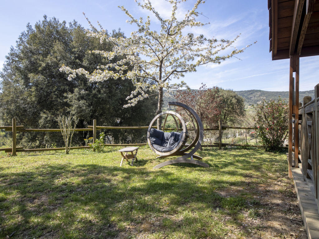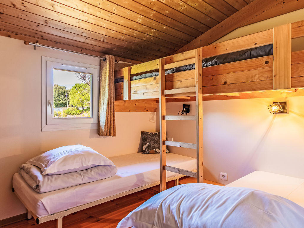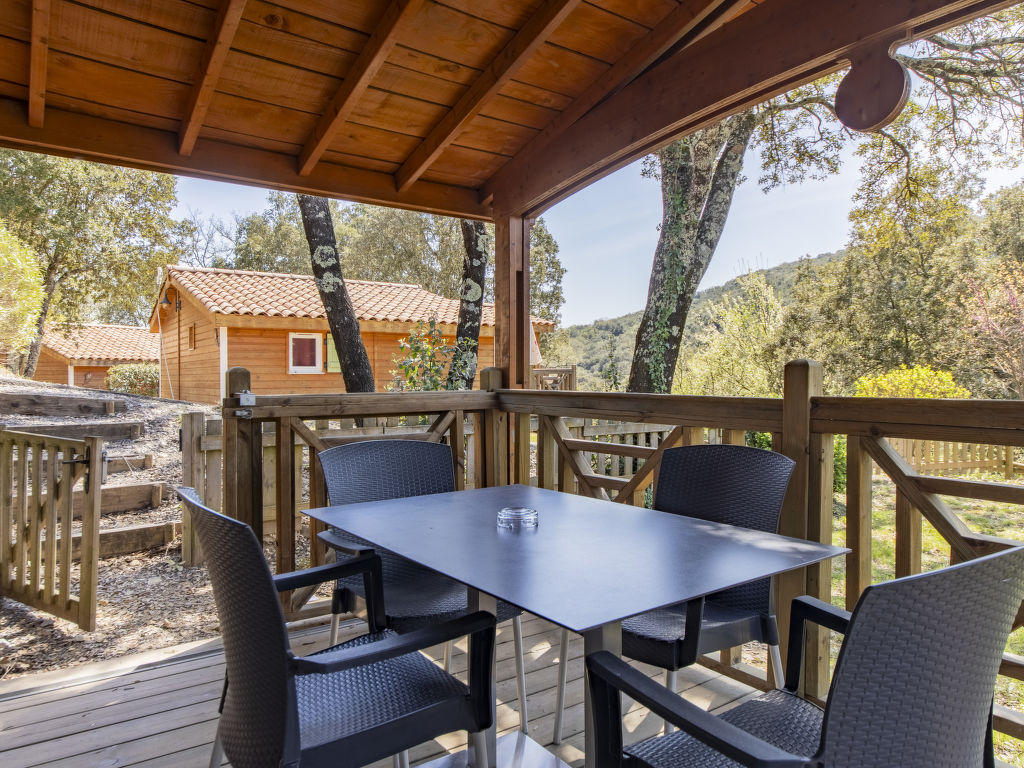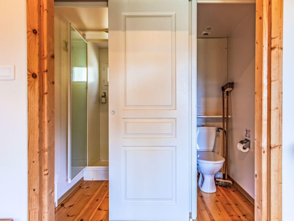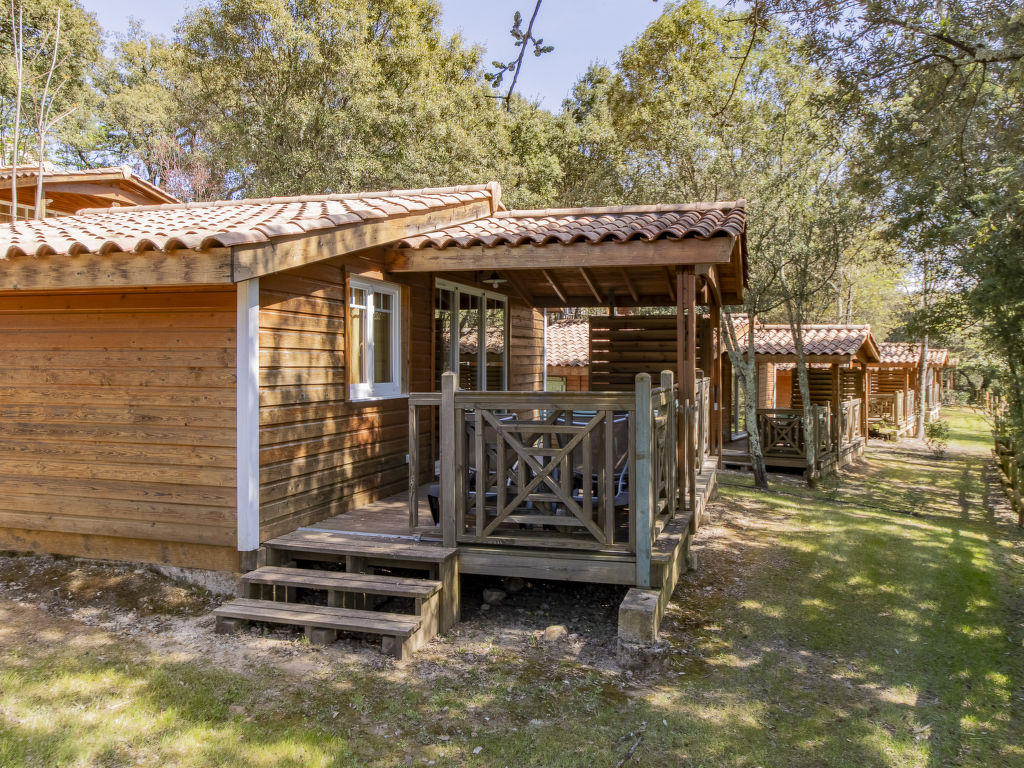 « Domaine de Sévenier », bungalow 3 pièces 35 m2. Clair, aménagement avec beaucoup de bois: séjour/salle à manger avec table pour les repas. Sortie sur la terrasse. 1 chambre avec 1 grand-lit (140 cm). 1 chambre avec 2 lits (80 cm), 1 x 1 lits superposés (80 cm). Coin cuisine (lave-vaisselle, 3 feux, grille-pain, bouilloire électrique, micro-ondes, congélateur, cafetière électrique). Douche, WC séparé. Chauffage électrique, air-conditionné. Sol en parquet. Terrasse 12 m2, couverte, jardin 100 m2. Meubles de terrasse. Vue sur le jardin et la forêt. A disposition: chaise haute pour enfant, lit bébé, sèche-cheveux. Internet (Connexion WIFI, gratuit). Place de parking (1 Voiture). Veuillez noter: logement non-fumeur. Maximum 2 animaux/ chiens autorisés.