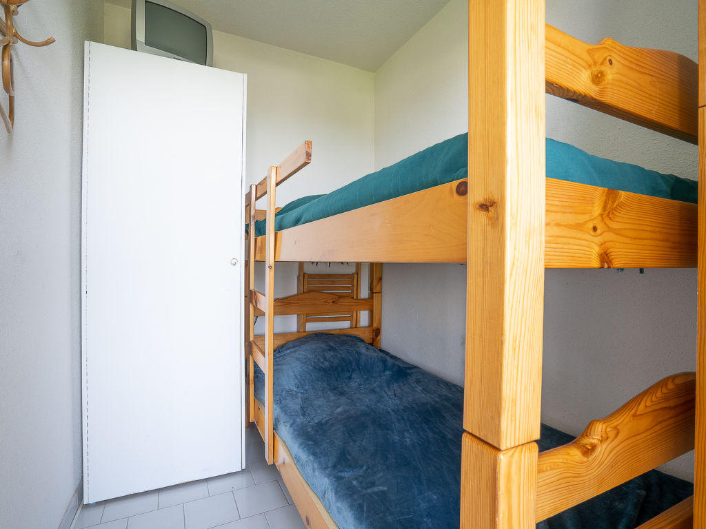 Studio 30 m2 au 7ème étage. Logement idéal pour 2 adultes + 2 enfants. Séjour/salle à manger avec 1 divan-lit double (140 cm, longueur 190 cm), TV. Cabine, sans fenêtre avec 1 x 2 lits superposés (80 cm, longueur 190 cm). Entrée avec 1 x 2 lits superposés (80 cm, longueur 190 cm). Coin cuisine (2 plaques vitrocéramiques, combiné micro-ondes). Douche/WC. Belle vue panoramique sur les alentours. A disposition: Internet (Connexion WIFI, en sus). Place de parking No 137. Veuillez noter: maximum 1 animal/ chien autorisé. Détecteur de fumée. Au lieu d’une chambre fermée, des espaces de couchage sont situés dans une zone ouverte (galerie, alcôve…).