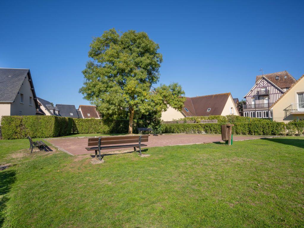 Résidence « Fleur Marine ». Dans la localité, à 1 km du centre de Cabourg, à 300 m de la mer, à 300 m de la plage, accès direct à la plage. En commun: terrain de pétanque, place de parking (nombre de places limité). Magasins 1 km, magasin d’alimentation 1 km, supermarché 900 m, restaurant 1 km, bar 1 km, location de bicyclettes 550 m, arrêt de bus « Plage » 450 m, plage de sable 300 m, centre thermal « Thalazur » 500 m. Port plaisance 3 km, terrain de golf (9 trous) 1.2 km, tennis 700 m, golf miniature 2.3 km, centre sportif 500 m. Attractions à proximité: Deauville 26 km, Honfleur 48 km, Caen 25 km. Veuillez noter: sans ascenseur. La photo ne montre qu’un exemple de location de vacances. Composée de maisons mitoyennes de 2 étages et de bâtiments de 3 étages de style normand.