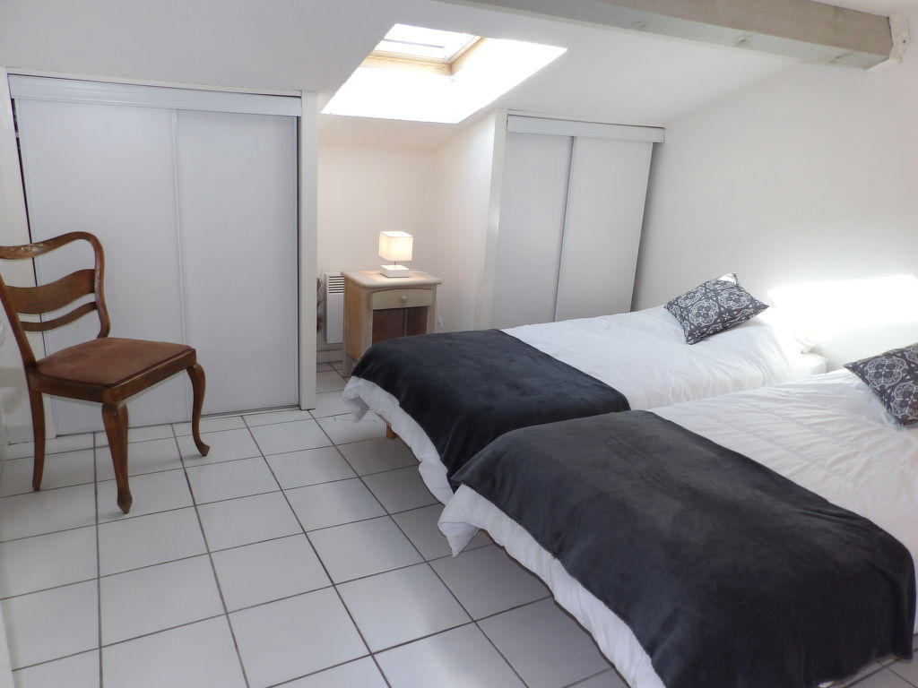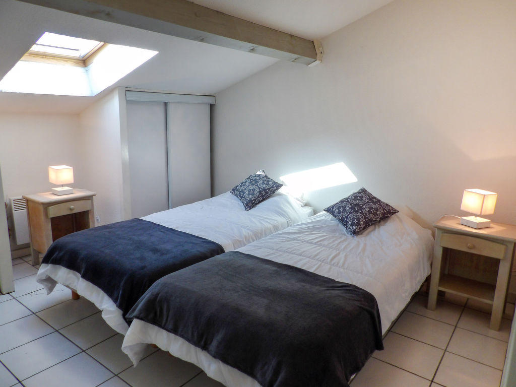 Appartement sur 2 niveaux 4 pièces 70 m2 au 3ème étage, situation sud-ouest. Aménagement agréable: séjour/salle à manger avec TV (écran plat). Sortie sur le balcon. 1 chambre avec 1 grand-lit (1 x 140 cm, longueur 190 cm), douche. Coin cuisine (lave-vaisselle, 4 plaques vitrocéramiques, grille-pain, bouilloire électrique, micro-ondes, cafetière électrique, Capsules pour machine à café (Senseo) (NON INCLUSES)). WC séparé. À l’étage supérieur: (escalier raide) 1 chambre, mansardée avec 2 lits (90 cm, longueur 190 cm). 1 chambre, mansardée avec 1 lit (90 cm, longueur 190 cm). Salle de bains. Chauffage électrique. Balcon 10 m2. Mobilier de balcon. Belle vue sur la mer. A disposition: lave-linge. Internet (Connexion WIFI, en sus). Place de parking No 309. Veuillez noter: logement non-fumeur. 1 animal/ chien de petite taille autorisé. TV seulement FR. Détecteur de fumée. Petit parking avec accès par trottoir.