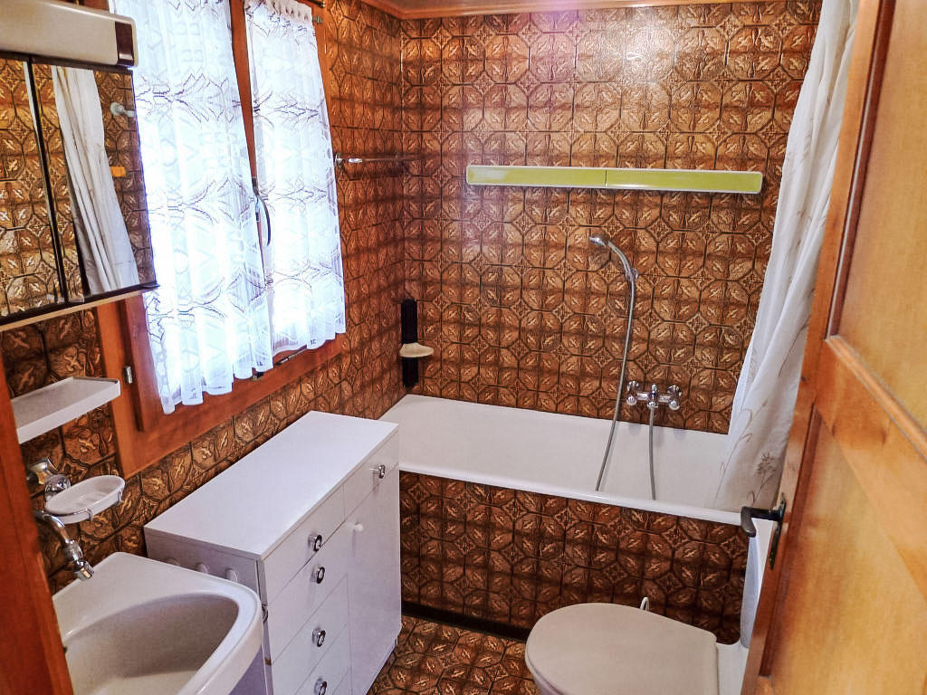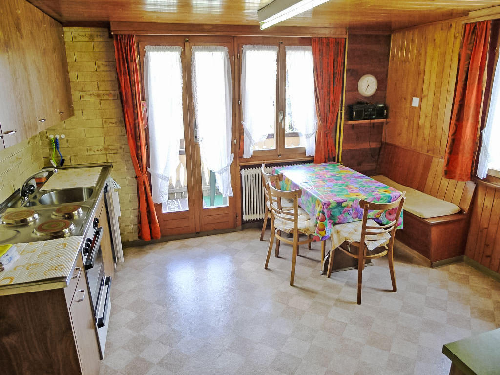 Chalet accueillant, rustique « Heiderösli », année de construction 1950, renové en 2002. Dans la localité, situation centrale, tranquille, ensoleillée, à 200 m du domaine skiable. En commun: jardinet, espace de jeux pour les enfants. Infrastructures de la Maison: local pour les skis, chauffage central. Accès en voiture jusqu’à 300 m de la maison. Parking public couvert à 300 m. Magasins 50 m, magasin d’alimentation, restaurant, arrêt de bus 100 m. Télésiège, remontées mécaniques, pistes de ski 300 m. École de ski 50 m, patinoire 500 m.