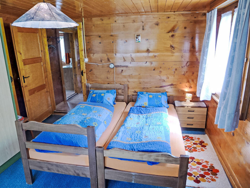 Apt 3 pièces 65 m2 au 1er étage. Aménagement simple et plaisant: séjour/chambre à coucher avec 2 lits (90 cm, longueur 200 cm), TV (satellite) et radio. Sortie sur le balcon. 1 chambre avec 1 lit. 1 chambre avec 2 lits. Sortie sur le balcon. Cuisine/séjour (3 plaques de cuisson, four, cafetière électrique) avec table pour les repas. Sortie sur le balcon. Bain/WC. 2 balcons. Mobilier de balcon. Superbe vue sur les montagnes, les alentours et la localité. A disposition: lit bébé. Maximum 1 animal/ chien autorisé.