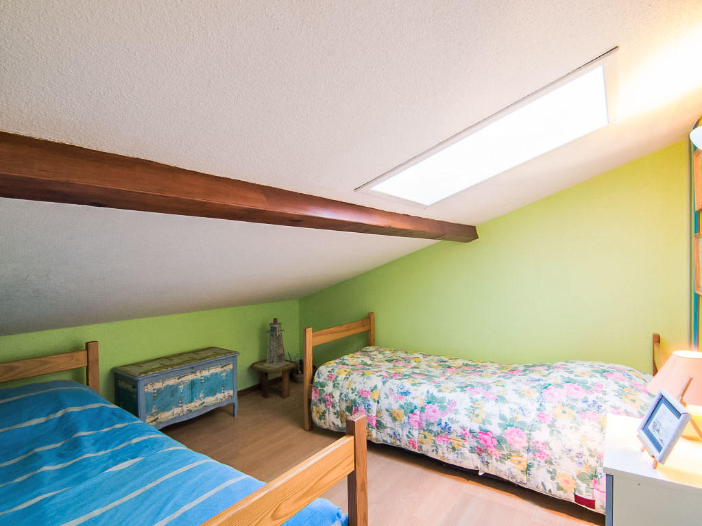 Maison mitoyenne 3 pièces 40 m2 sur 2 niveaux. Logement idéal pour 2 adultes + 2 enfants. Séjour/salle à manger avec TV. Sortie sur la terrasse. Cuisine ouverte (2 plaques de cuisson, lave-vaisselle, micro-ondes). Douche/WC. Chauffage électrique. À l’étage supérieur: (escalier raide) 1 chambre avec 1 grand-lit (1 x 140 cm, longueur 190 cm). 1 chambre, mansardée hauteur plafond 170 – 70 cm avec fenêtre sous le toit avec 2 lits (80 cm, longueur 190 cm). Terrasse 13 m2. Meubles de terrasse. A disposition: lave-linge. Internet (Connexion WIFI, en sus). Place de parking No 1. Veuillez noter: maximum 1 animal/ chien autorisé. Détecteur de fumée.