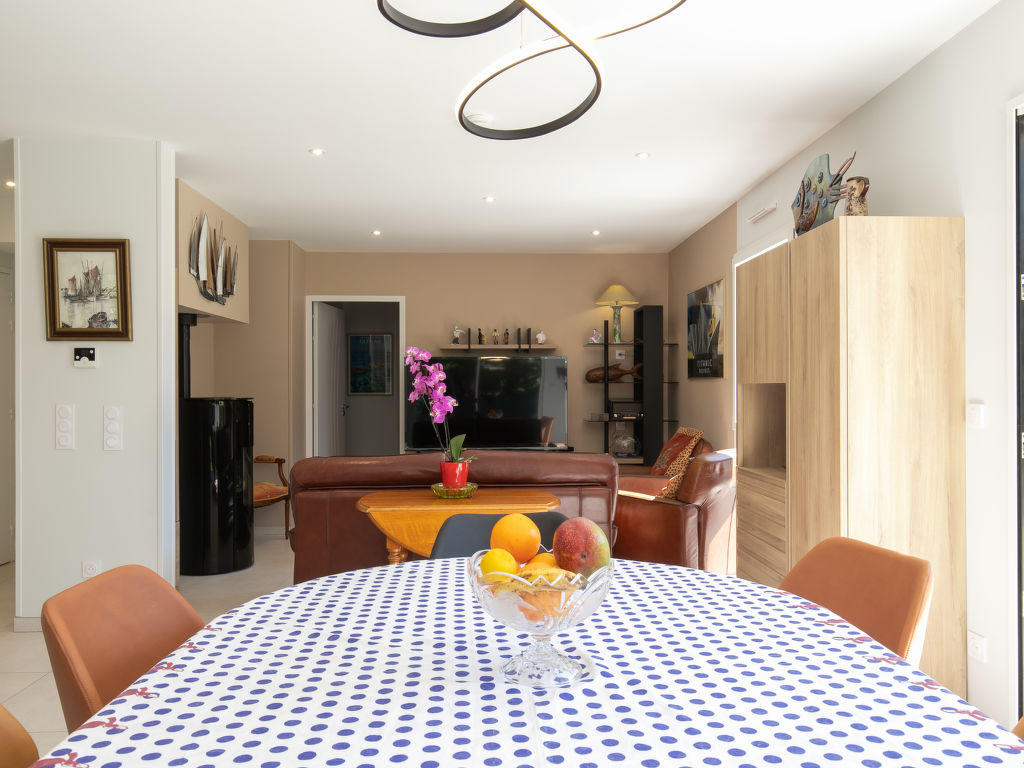 « Keryanne », maison 4 pièces 105 m2, situation sud. Spacieux et clair, aménagement confortable et de bon goût: entrée. Grand séjour/salle à manger avec poêle suédois (uniquement à titre de décoration), coin repas et TV (écran plat), radio et lecteur CD. Sortie sur la terrasse. 1 chambre avec 1 grand-lit (160 cm, longueur 200 cm), douche/WC. Sortie sur la terrasse. 2 chambres, chaque chambre avec: 1 grand-lit (160 cm, longueur 200 cm). Cuisine ouverte (four, lave-vaisselle, 3 plaques vitrocéramiques, grille-pain, bouilloire électrique, micro-ondes, congélateur, cafetière électrique, Capsules pour machine à café (Nespresso) (NON INCLUSES), ilot de cuisine). Douche, WC séparé. Chauffage par le sol. Grande terrasse 50 m2, situation sud. Meubles de terrasse, chaises longues (4). A disposition: lave-linge, sèche-linge. Internet (Connexion WIFI, gratuit). Veuillez noter: maison non-fumeur. Maximum 1 animal/ chien autorisé. Détecteur de fumée. Annonce d’un particulier (art 155, IV du CGI).