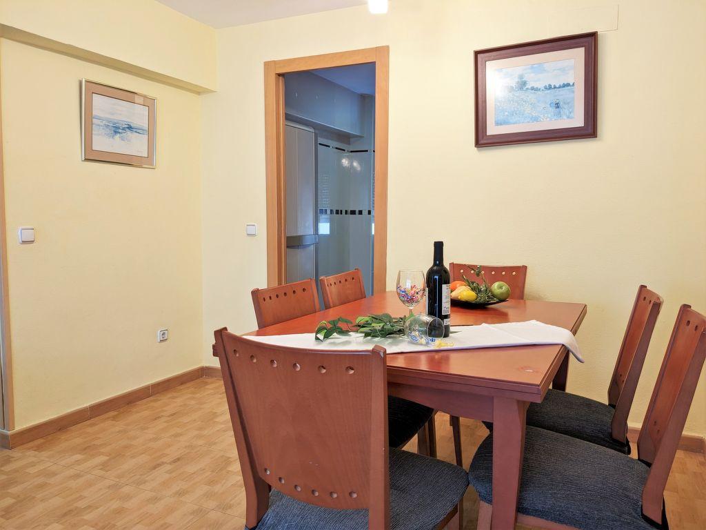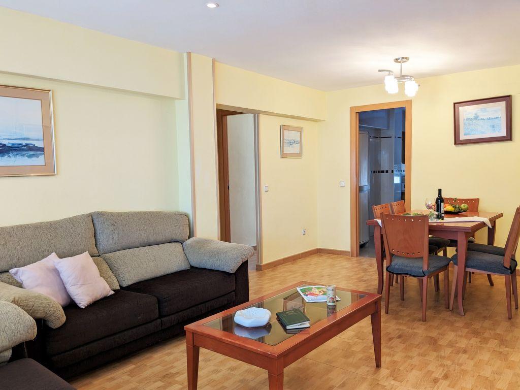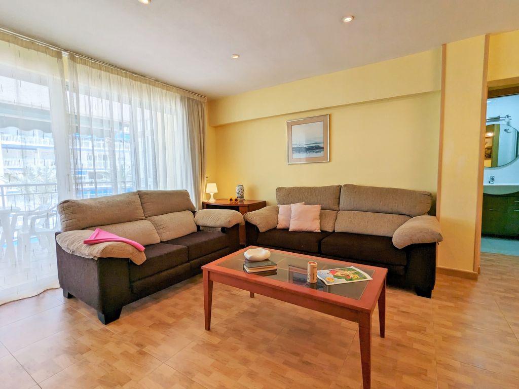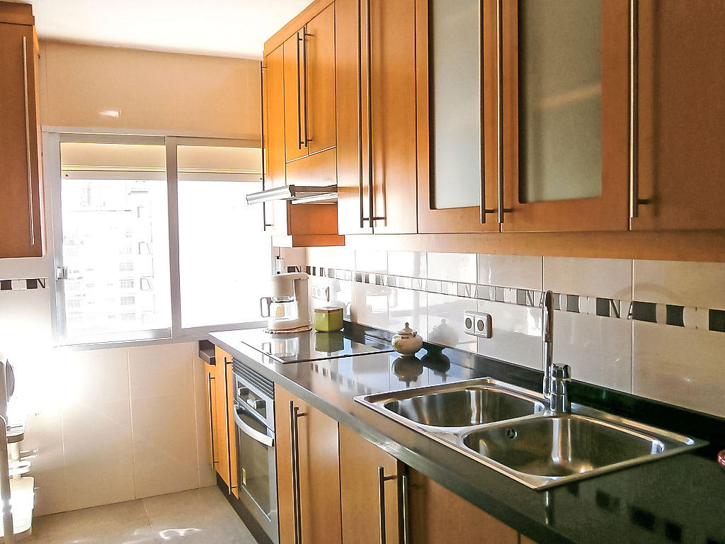 « La Goleta », apt 4 pièces 90 m2 au 5ème étage, situation sud. Logement idéal pour 6 adultes. Spacieux et clair, aménagement fonctionnel et confortable: séjour/salle à manger 23 m2 avec Télévision numérique et chauffage électrique. Sortie sur la terrasse. 1 chambre 21 m2 avec 1 grand-lit (135 cm, longueur 190 cm), douche/WC, radiateur électrique et ventilateur. 1 chambre 15 m2 avec 2 lits (90 cm, longueur 190 cm). 1 chambre 15 m2 avec 1 grand-lit (135 cm, longueur 190 cm), radiateur électrique et ventilateur. Cuisine 6 m2 (four, 4 plaques vitrocéramiques, grille-pain, bouilloire électrique, micro-ondes, congélateur, cafetière électrique). Douche/WC. Terrasse 11 m2, terrasse 6 m2. Meubles de terrasse. Vue latérale sur la localité et l’océan. A disposition: lave-linge, fer à repasser, sèche-cheveux. Place de parking, hauteur 180 cm. 1 animal/ chien de petite taille autorisé. VT-321570-BM