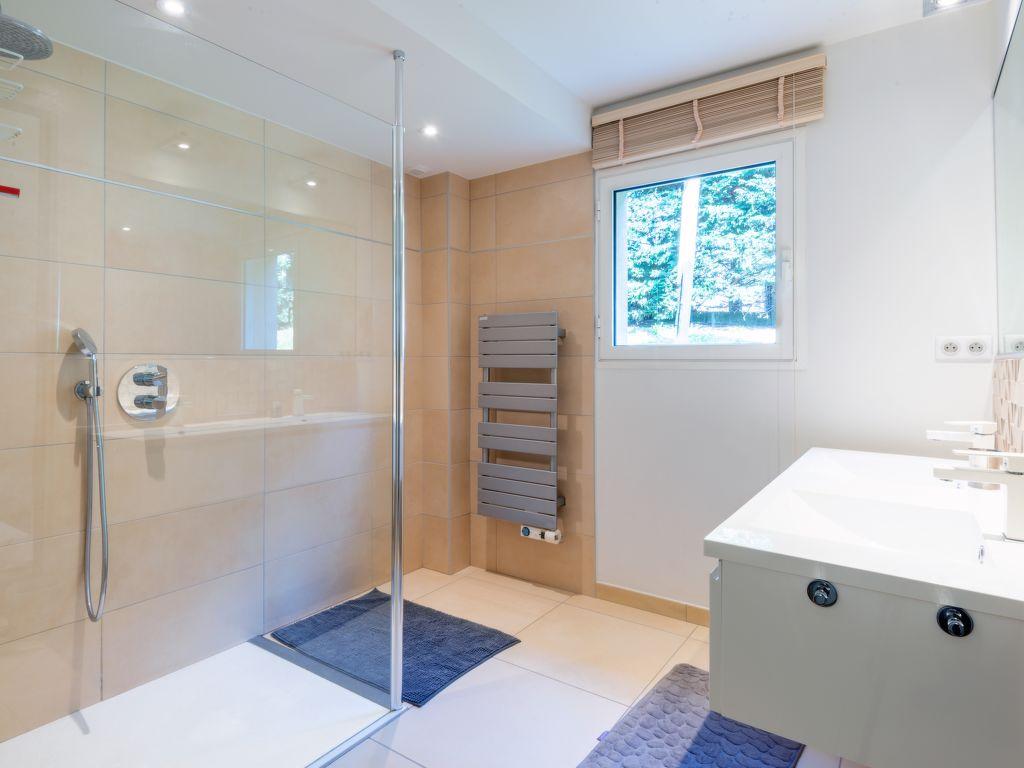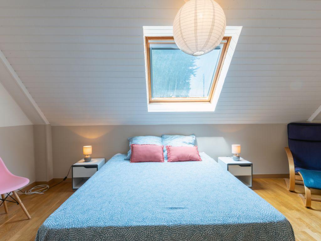 Maison 7 pièces 250 m2. Aménagement confortable et agréable: séjour/salle à manger avec baie vitrée avec TV (écran plat), chauffage électrique. Sortie sur la terrasse. 1 chambre avec 1 grand-lit (160 cm, longueur 200 cm) avec salle de bains et WC séparés. Cuisine ouverte (four, lave-vaisselle, 3 plaques à induction, grille-pain, bouilloire électrique, micro-ondes, cafetière électrique). À l’étage supérieur: 2 chambres (1 x 160 cm, longueur 200 cm). 1 chambre (90 cm, longueur 200 cm) (1 x 160 cm, longueur 200 cm). 1 chambre avec 3 lits (90 cm, longueur 200 cm). Salle de bains, WC séparé. A disposition: lave-linge, sèche-linge. Veuillez noter: maximum 1 animal/ chien autorisé. Détecteur de fumée.