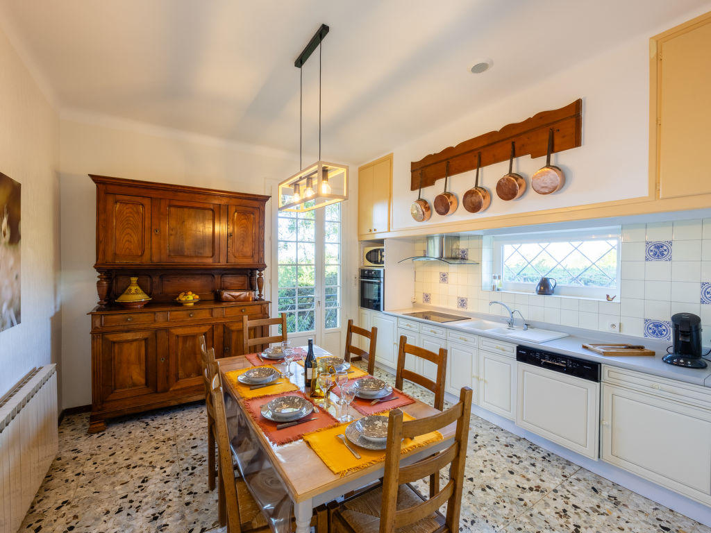 « Le Clos Saint Emilie (Tennis & piscine) », maison 6 pièces 140 m2. Aménagement très agréable: grand séjour avec TV (écran plat), ventilateur. Salle à manger avec table pour les repas et air-conditionné. Sortie sur la terrasse. 1 chambre avec 1 grand-lit (1 x 160 cm, longueur 200 cm), air-conditionné. 1 chambre avec 1 grand-lit (1 x 140 cm, longueur 190 cm), ventilateur. 1 grande chambre avec 1 grand-lit (1 x 160 cm, longueur 200 cm), ventilateur. 1 chambre avec 2 lits (90 cm, longueur 200 cm), air-conditionné. Cuisine (four, lave-vaisselle, 4 plaques vitrocéramiques, grille-pain, bouilloire électrique, micro-ondes, congélateur, cafetière électrique) avec air-conditionné. Bain/douche, douche/WC, WC séparé. Chauffage électrique. Grande terrasse 25 m2. Mobilier de balcon, chaises longues, place pour s’asseoir. Très belle vue sur le jardin et les alentours. A disposition: lave-linge, fer à repasser, chaise haute pour enfant, lit bébé jusqu’à 2 ans, sèche-cheveux, bois (gratuit). Internet (Connexion WIFI, gratuit). Place de parking (6 Voitures). Veuillez noter: maison non-fumeur. Maximum 1 animal/ chien autorisé. Détecteur de fumée. Terrain de tennis, cuisine d’été à disposition avec lave vaisselle, congélateur. Annonce d’un particulier (art 155, IV du CGI).