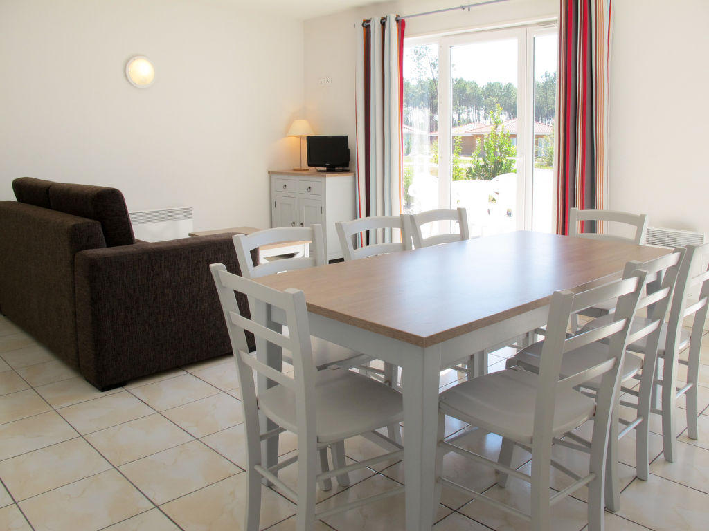 « Le Domaine des Grands Lacs », maison 4 pièces 58 m2. Clair, aménagement moderne: séjour/chambre à coucher avec 1 divan-lit double, table pour les repas et TV. Sortie sur la terrasse. 1 chambre avec 1 grand-lit. 1 chambre avec 2 lits (80 cm). 1 petite chambre avec 1 x 2 lits superposés (80 cm). Petite cuisine ouverte (four, lave-vaisselle, 4 plaques vitrocéramiques, grille-pain, bouilloire électrique, micro-ondes, congélateur, cafetière électrique). Salle de bains, WC séparé. Chauffage électrique. Terrasse. Meubles de terrasse. A disposition: Internet (Connexion WIFI). Veuillez noter: maximum 1 animal/ chien autorisé. Détecteur de fumée.