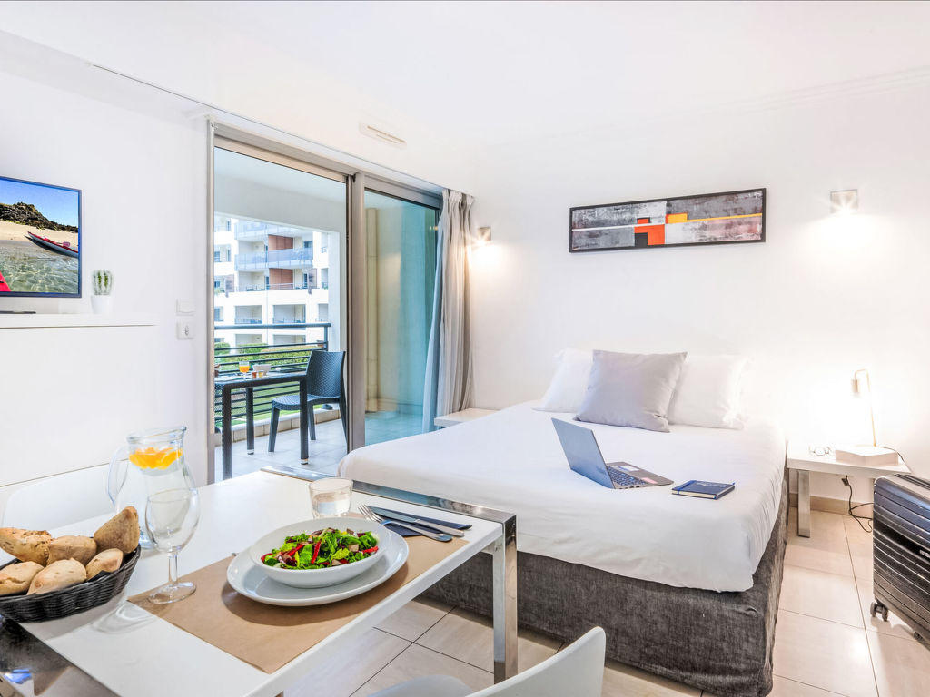« Le Lido » studio 28 m2. Clair, aménagement moderne: séjour/chambre à coucher avec 1 grand-lit (160 cm), table pour les repas et TV. Coin cuisine (lave-vaisselle, 2 plaques vitrocéramiques, grille-pain, bouilloire électrique, micro-ondes, cafetière électrique). Bain/WC. Chauffage, air-conditionné. Balcon ou terrasse. Meubles de terrasse, mobilier de balcon. A disposition: Internet (Connexion WIFI, en sus). Veuillez noter: logement non-fumeur. Maximum 1 animal/ chien autorisé. Détecteur de fumée, extincteur. Cette location est un exemple de location / d’appartement.