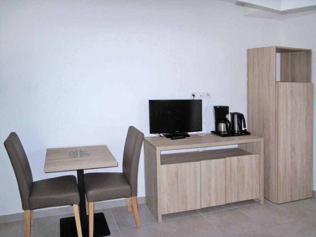 « Le Lotus Blanc » studio 22 m2. Aménagement agréable: séjour/chambre à coucher avec 2 couchages, table pour les repas et TV (écran plat), air-conditionné. Sortie sur la terrasse. Petite cuisine ouverte (2 plaques vitrocéramiques, bouilloire électrique, cafetière électrique, combiné micro-ondes). Douche/WC. Chauffage électrique. Balcon ou terrasse. Meubles de terrasse. A disposition: chaise haute pour enfant, lit bébé (en sus). Internet (Connexion WIFI, gratuit). Place de parking (1 Voiture). Veuillez noter: logement non-fumeur. Maximum 1 animal/ chien autorisé. Détecteur de fumée, extincteur.