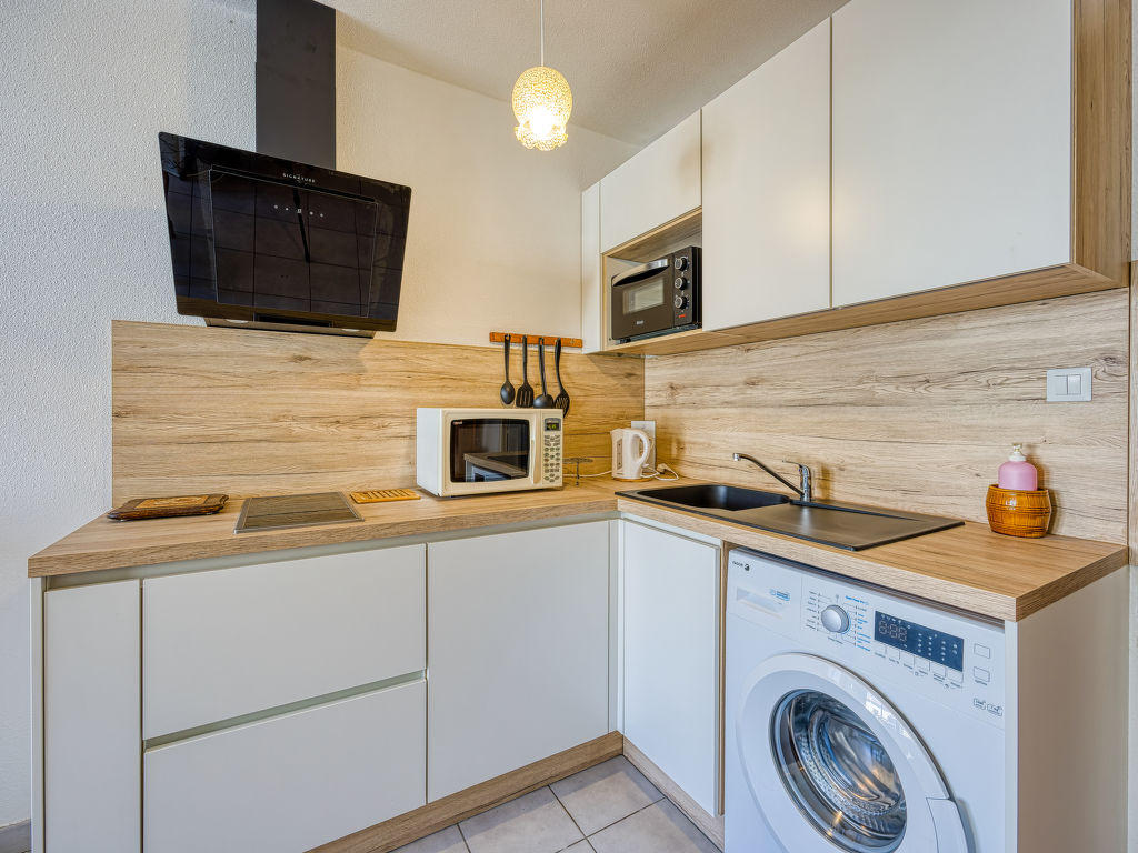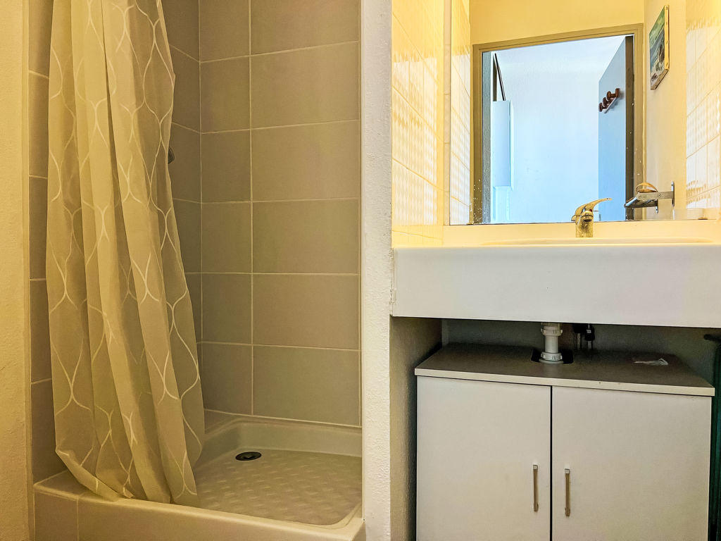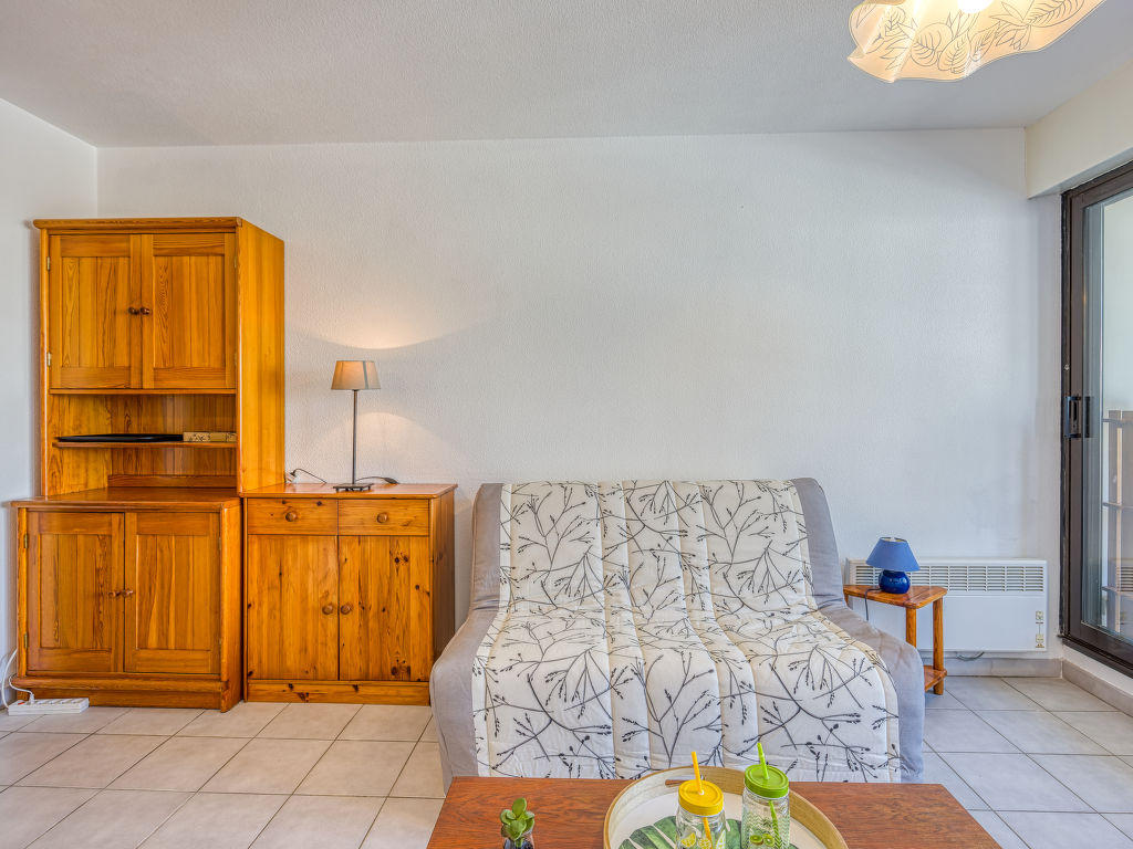 Studio 27 m2 au 3ème étage. Séjour/salle à manger avec 1 divan-lit double (140 cm, longueur 190 cm), TV (écran plat). Sortie sur la loggia. Cabine avec 1 x 2 lits superposés (90 cm, longueur 190 cm). Cuisine ouverte (mini-four, 2 plaques vitrocéramiques, bouilloire électrique, micro-ondes, cafetière électrique). Douche, WC séparé. Chauffage électrique. Vue latérale sur la mer. A disposition: lave-linge. Internet (Connexion WIFI, en sus). Veuillez noter: pas de parking. Maximum 1 animal/ chien autorisé. Détecteur de fumée. Au lieu d’une chambre fermée, des espaces de couchage sont situés dans une zone ouverte (galerie, alcôve…). Annonce d’un particulier (art 155, IV du CGI).