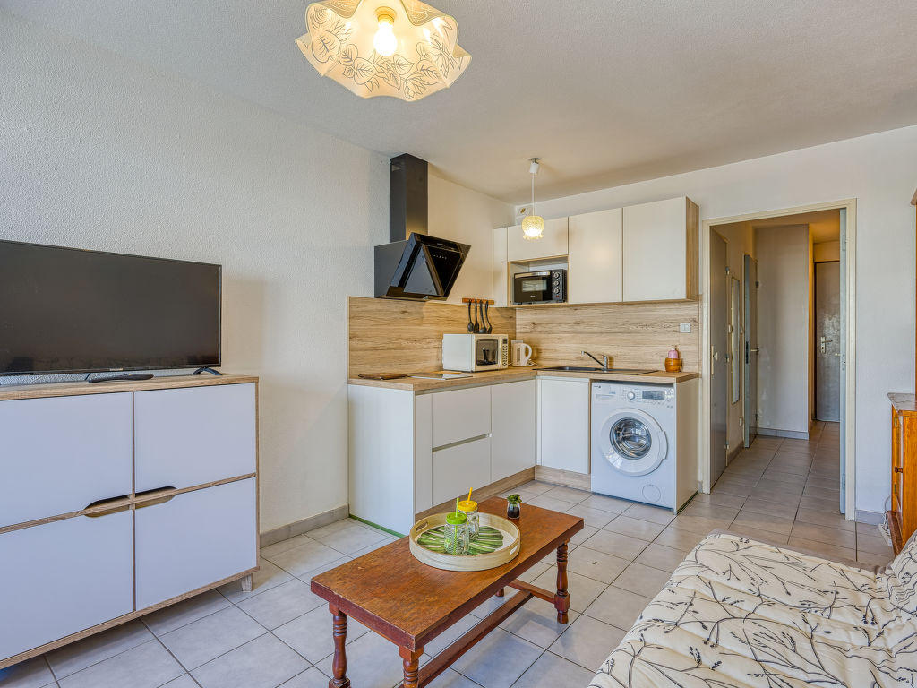 Résidence « Le Sunset/Cap Sud ». Dans le quartier de Rochelongue, à 100 m de la mer, à 100 m de la plage. En commun: jardin (clôturé), piscine (12 x 6 m, profondeur 40 – 175 cm, disponibilité saisonnière: 01.Mai. – 30.Sep.). Espace de jeux pour les enfants. Infrastructures de la résidence: ascenseur. Parking public 50 m possible dans la rue. Magasins, magasin d’alimentation, restaurant 350 m, boulangerie 110 m, arrêt de bus « Mail de Rochelongue » 280 m, plage de sable « Rochelongue » 230 m. Port plaisance 3 km, terrain de golf (27 trous) 1.5 km, tennis 3 km, centre équestre 1.4 km. Attractions à proximité: Aqualand 1.7 km, Ile des Loisirs 1.9 km, Musée de l’Ephèbe 3 km, Casino 2.5 km, Luna Park 2.4 km, Accrobranche 4.7 km.