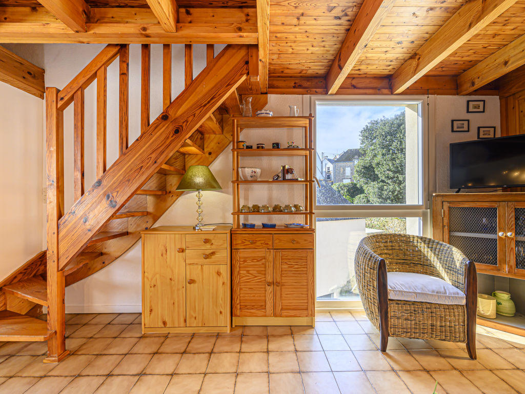 « Le Voulien », apt 3 pièces 50 m2 sur 2 niveaux au 4ème étage. Clair: séjour/salle à manger avec TV (écran plat), radiateur électrique. Sortie sur le balcon. 1 petite chambre avec 1 lit (90 cm, longueur 190 cm). Coin cuisine (four, 2 plaques à induction, bouilloire électrique, micro-ondes, cafetière électrique). Douche/WC. À l’étage supérieur: 1 chambre, mansardée avec 1 lit (90 cm, longueur 190 cm). 1 chambre, mansardée avec 1 grand-lit (1 x 140 cm, longueur 190 cm). Balcon 4 m2, situation sud. Mobilier de balcon. Vue éloignée sur le port. A disposition: lave-linge, fer à repasser, sèche-cheveux. Internet (Connexion WIFI, gratuit). Veuillez noter: pas de parking. Maximum 1 animal/ chien autorisé. Détecteur de fumée. Annonce d’un particulier (art 155, IV du CGI).