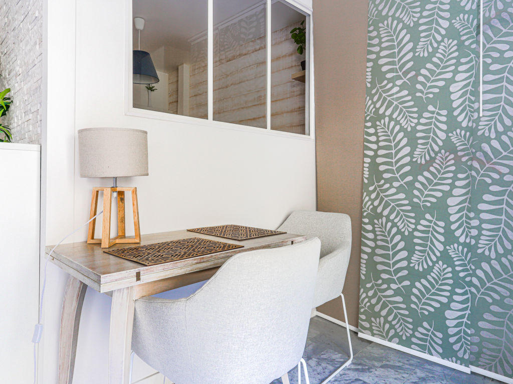 Apt 2 pièces 35 m2, au rez-de-chaussée, situation sud. Complètement rénové en 2023, aménagement très confortable et moderne: séjour avec TV, écran plat et air-conditionné. Sortie sur la terrasse. 1 chambre avec 1 grand-lit (140 cm, longueur 190 cm). Cuisine ouverte (four, 2 plaques à induction, grille-pain, bouilloire électrique, micro-ondes, cafetière électrique). Douche/WC. Chauffage. Terrasse, situation sud. Meubles de terrasse. Vue sur les alentours. A disposition: lave-linge, fer à repasser, sèche-cheveux. Internet (Connexion WIFI, en sus). Veuillez noter: 1 animal/ chien de petite taille autorisé. Détecteur de fumée. Annonce d’un particulier (art 155, IV du CGI). 06088032995WF
