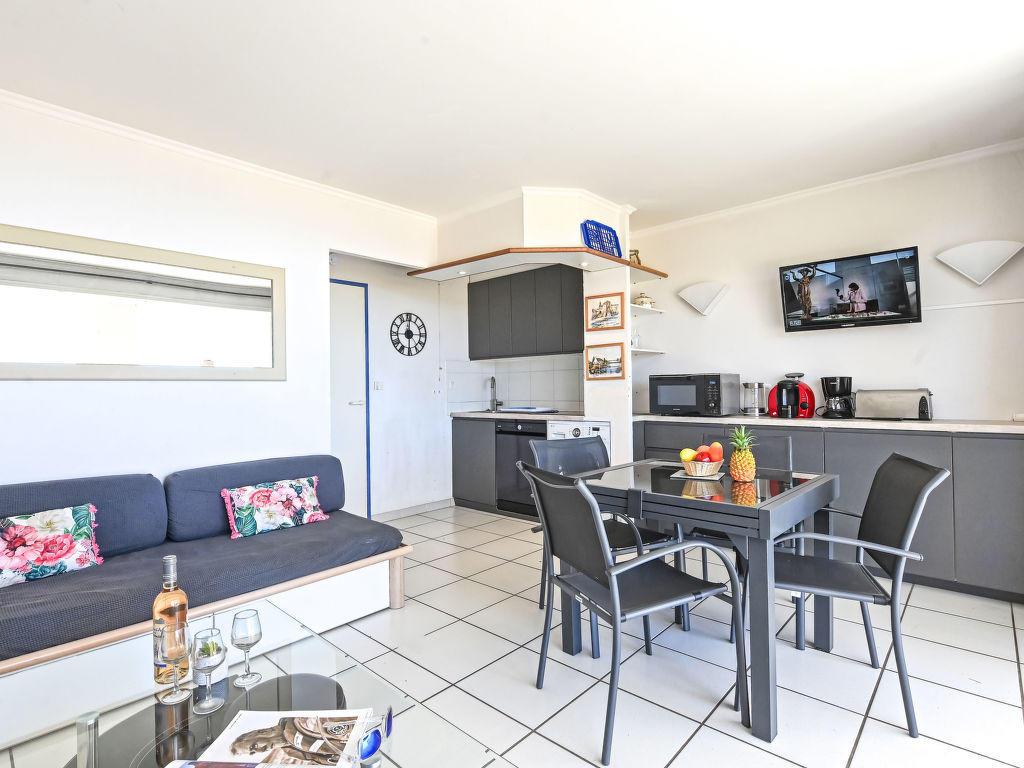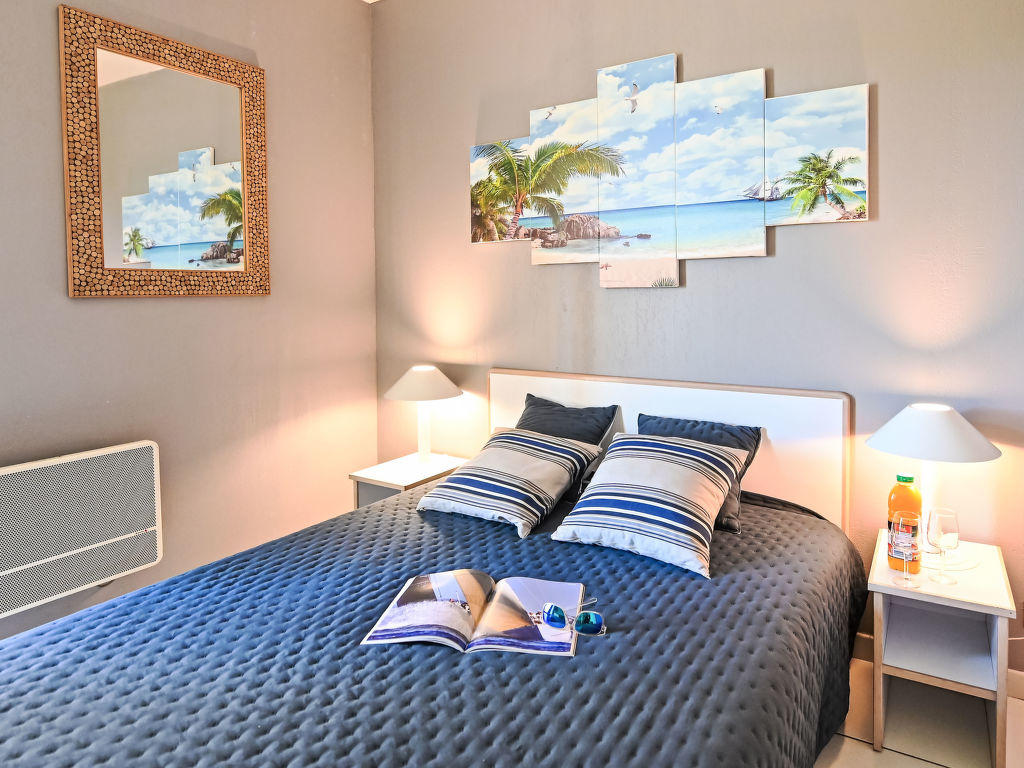 « Les Bastides (I3 049) », apt 2 pièces 36 m2, rez-de-chaussée surélevé. Séjour avec 2 divans-lits (80 cm, longueur 190 cm), TV (écran plat). Sortie sur le jardin, sur la terrasse. 1 chambre avec 1 grand-lit (140 cm, longueur 190 cm). Sortie sur la terrasse. Coin cuisine (4 plaques de cuisson, four, grille-pain, bouilloire électrique, micro-ondes, congélateur, cafetière électrique). Bain/WC. Chauffage électrique. Terrasse 10 m2, jardinet. Meubles de terrasse. Vue sur la mer. A disposition: Internet (Connexion WIFI, en sus). Place de parking (1 Voiture) près de la maison. Veuillez noter: logement non-fumeur. 1 animal/ chien de petite taille autorisé. Détecteur de fumée. Annonce d’un particulier (art 155, IV du CGI).