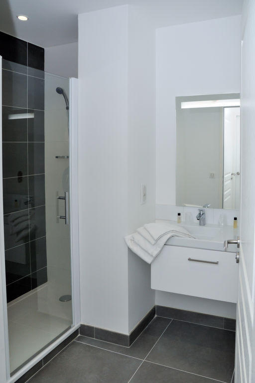 Complexe de vacances moderne « Les Coteaux de Jonzac », de 3 étages, année de construction 2018. 90 appartements dans la même entité. À 1.3 km du centre de Jonzac, à 34 km du centre de Cognac, à 64 km du centre de Royan. Infrastructures de la Maison: réception, ascenseur, lave-linge, sèche-linge (en commun, en sus). Service boulangerie. Place de parking. Supermarché 2.5 km, restaurant, bar, piscine, piscine couverte 200 m. Attractions à proximité: adventure pool Les Antilles de Jonzac 200 m, thermes de Jonzac 1.5 km. La photo n´est qu´un exemple. Les locations peuvent également se différencier par leur superficie, la disposition des pièces et leur équipement. Les clients bénéficient d’un accès gratuit à la piscine d’aventure « Les Antilles de Jonzac » (ouverte du 01/01 au 31/12) avec 1 entrée par personne pour un séjour de 2 jours/1 nuit, 2 entrées pour 3 jours/2 nuits et 3 entrées pour 4 jours/3 nuits.
