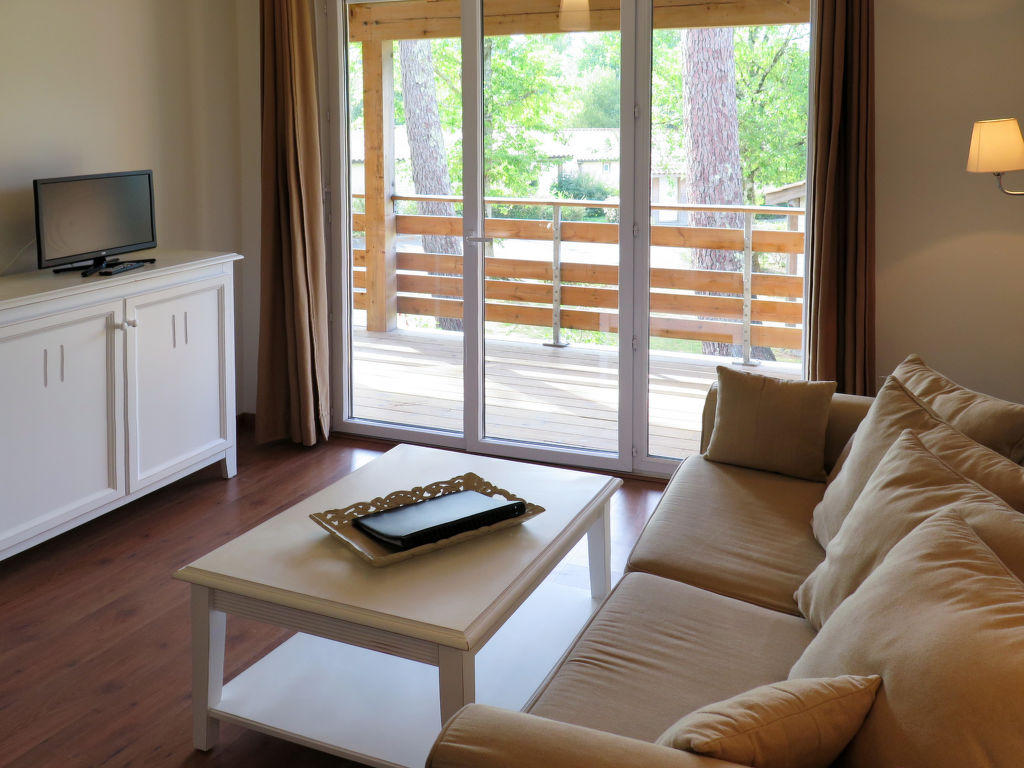Complexe de vacances accueillant pour les enfants « Les Cottages du Lac », environné par les arbres. 50 maisons dans la résidence. 112 appartements dans la résidence. À 3 km du centre de Parentis, à 9 km du centre de Biscarrosse, à 27 km du centre de Mimizan, à 18 km de la mer, à 400 m du lac. En commun: terrain (clôturé) avec arbres, 2 piscines chauffée (400 m2, disponibilité saisonnière: 01.Mai. – 15.Oct.). Bassin pour les enfants, douche extérieure, bain à remous , ping-pong, terrain de pétanque. Infrastructures de la résidence: réception, café, Connexion WIFI, sauna (en sus). Billard, lave-linge, sèche-linge (en commun, en sus). Place de parking (nombre de places limité) sur le terrain. Borne de recharge électrique. Magasins 3 km, supermarché 4 km, restaurant 3 km, arrêt de bus « Parc segot » 3 km, plage de sable « Biscarrosse-Plage » 18 km, baignade en lac « Lac de Biscarrosse et Parentis » 400 m. Veuillez noter: résidence avec portail électrique. La photo ne montre qu’un exemple de location de vacances. Les locations peuvent également se différencier par leur superficie, la disposition des pièces et leur équipement.