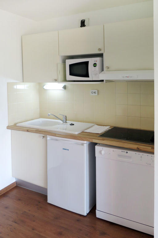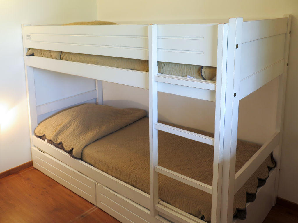 « Les Cottages du Lac T3 », apt 3 pièces 38 m2. Clair, aménagement plaisant: séjour/salle à manger avec table pour les repas et TV (satellite) (écran plat). Sortie sur le balcon, sur la terrasse. 1 chambre avec porte coulissante avec 1 grand-lit (140 cm, longueur 190 cm). 1 chambre avec 1 x 2 lits superposés (80 cm, longueur 180 cm). Cuisine ouverte (lave-vaisselle, 4 plaques vitrocéramiques, grille-pain, bouilloire électrique, micro-ondes, cafetière électrique). Salle de bains, WC séparé. Chauffage électrique. Balcon ou terrasse couverte. Mobilier de balcon. A disposition: chaise haute pour enfant, lit bébé (en sus). Internet (Connexion WIFI, gratuit). Veuillez noter: logement non-fumeur. Maximum 1 animal/ chien autorisé. Détecteur de fumée, extincteur.
