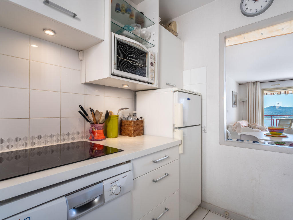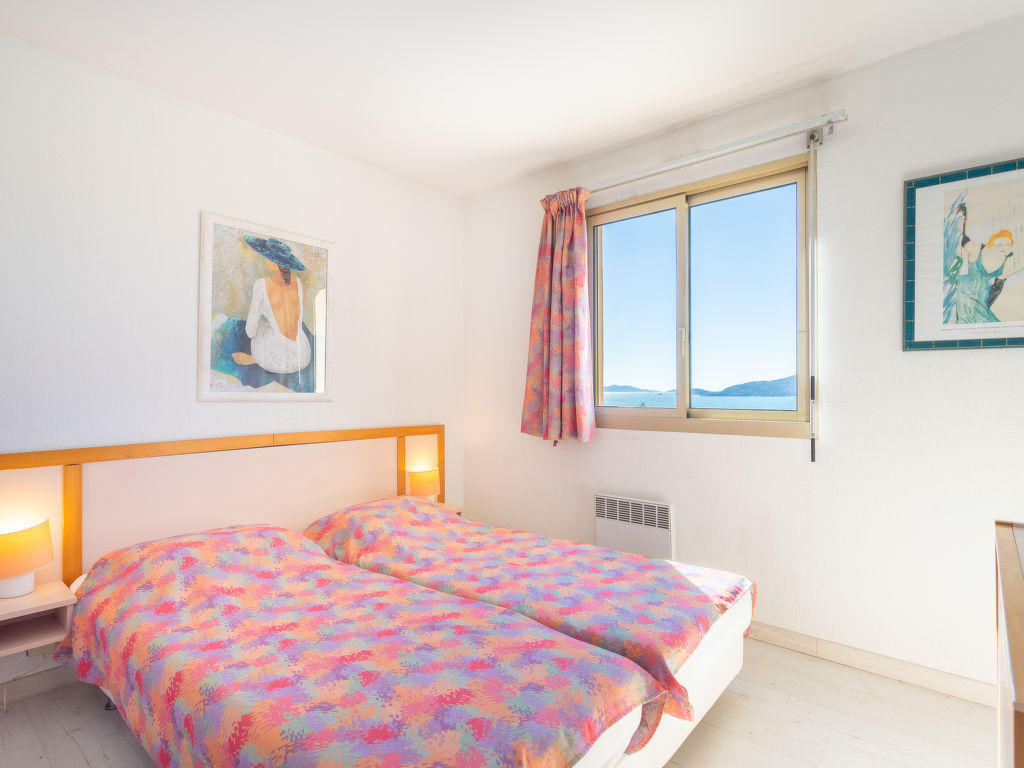 Apt 3 pièces 60 m2 au 2ème étage. Aménagement fonctionnel et agréable: séjour/salle à manger avec table pour les repas et TV (écran plat). Sortie sur la terrasse. 1 chambre avec 1 grand-lit (160 cm, longueur 200 cm). 1 chambre avec 2 lits (90 cm, longueur 190 cm). Cuisine (four, lave-vaisselle, 3 plaques à induction, grille-pain, bouilloire électrique, micro-ondes, congélateur, cafetière électrique). Salle de bains, WC séparé. Chauffage électrique. Balcon 10 m2, situation sud. Mobilier de balcon. Très belle vue sur la mer et la baie. A disposition: lave-linge, fer à repasser, sèche-cheveux. Internet (Connexion WIFI, en sus). Place de parking No 11. Veuillez noter: maximum 1 animal/ chien autorisé. TV seulement FR. Détecteur de fumée. 83070 000043 AP