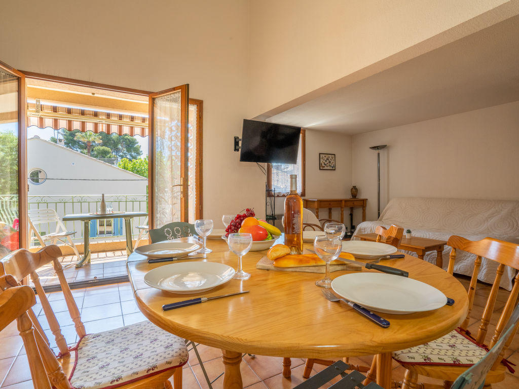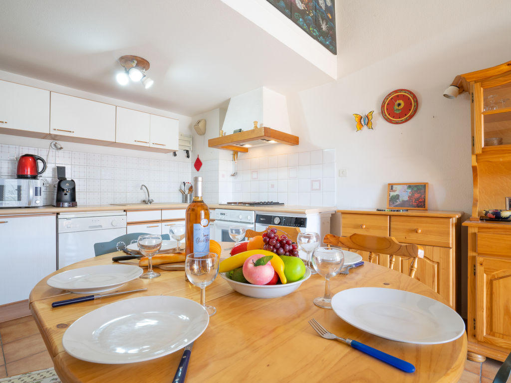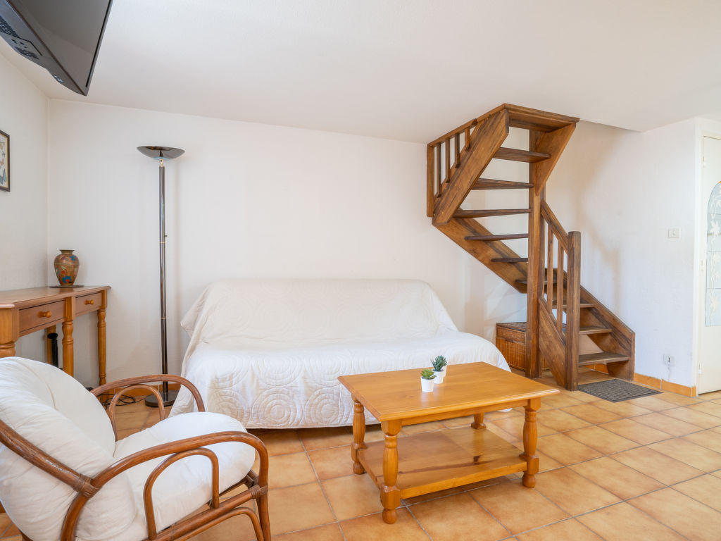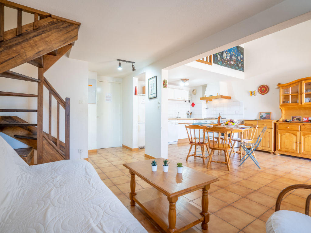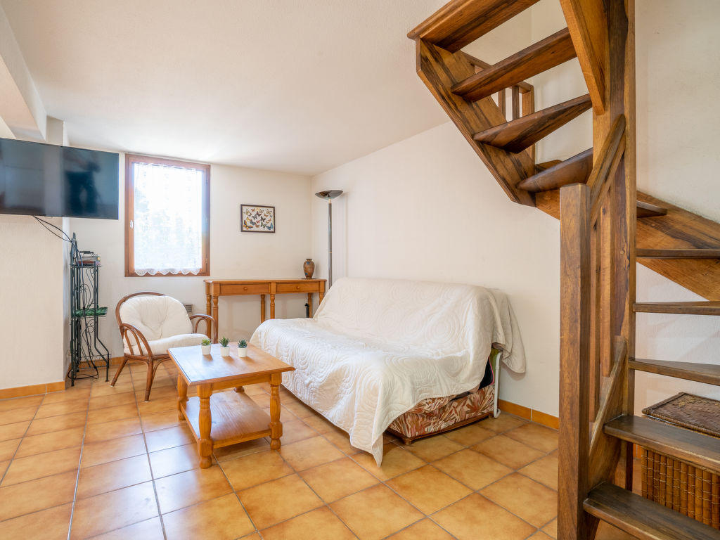 Apt 3 pièces 60 m2 sur 2 niveaux au 2ème étage. Aménagement fonctionnel et confortable: séjour/salle à manger avec TV. Sortie sur la terrasse. Cuisine ouverte (four, lave-vaisselle, 3 plaques à induction, grille-pain, bouilloire électrique, micro-ondes, congélateur, cafetière électrique, Capsules pour machine à café (L’Or Barista) (NON INCLUSES)). WC séparé. À l’étage supérieur: 1 chambre avec fenêtre sous le toit avec 1 grand-lit (140 cm, longueur 190 cm), ventilateur. 1 chambre avec fenêtre sous le toit avec 2 lits (90 cm, longueur 190 cm), ventilateur. Salle de bains, WC séparé. Chauffage électrique. Terrasse 10 m2, couverte, situation sud-est. Meubles de terrasse. A disposition: Internet (Connexion WIFI, en sus). Garage, hauteur 180 cm, largeur 240 cm. Veuillez noter: parking pour 1 petite voiture. Maximum 1 animal/ chien autorisé. TV seulement FR. Détecteur de fumée. Pour information: moquette dans les chambres. Le garage est situé au sous-sol. 83112 000253 ER