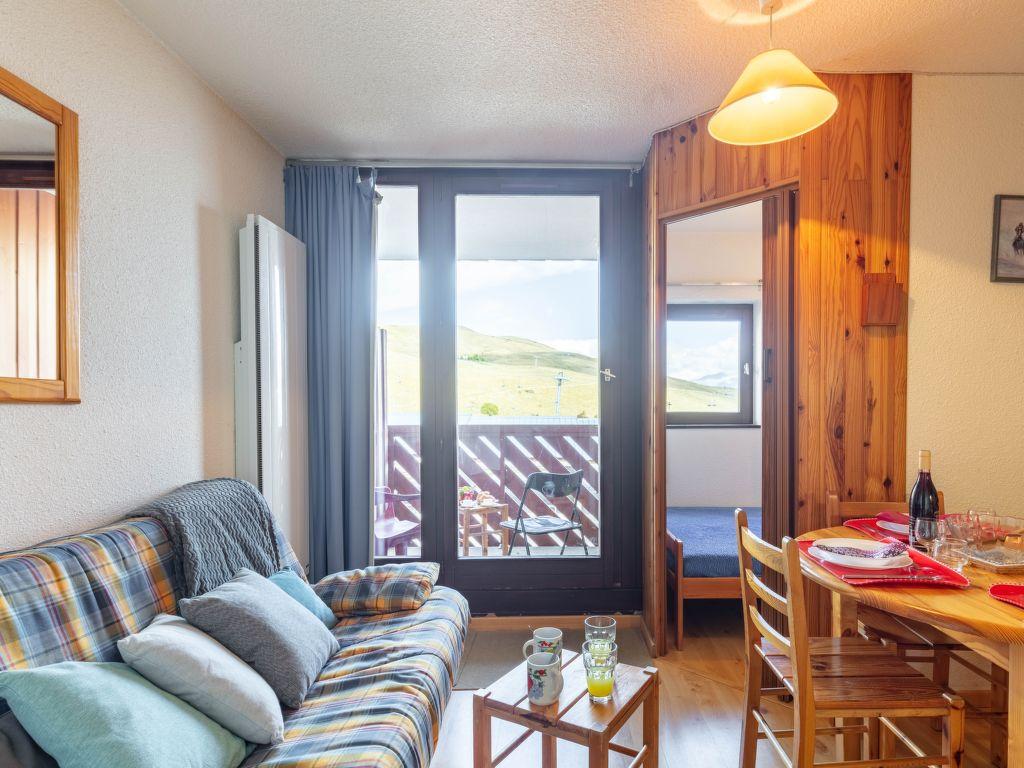 Apt 2 pièces 25 m2 au 1er étage. Aménagement simple et fonctionnel: séjour/salle à manger avec TV (écran plat). Sortie sur le balcon, orientée nord. Entrée avec 1 x 2 lits superposés (70 cm, longueur 190 cm). 1 chambre avec porte coulissante avec 1 grand-lit (140 cm, longueur 190 cm). Coin cuisine (four, 2 plaques vitrocéramiques, bouilloire électrique, micro-ondes, cafetière électrique). Salle de bains, WC séparé. Chauffage électrique, chauffe eau. Sol en parquet. Balcon 3 m2, situation nord. Vue partielle sur les montagnes. A disposition: sèche-cheveux. Internet (Connexion WIFI, en sus). Veuillez noter: logement côté parking. Logement non-fumeur. Maximum 1 animal/ chien autorisé. Détecteur de fumée, sans ascenseur. Logement dans batiment B. ATTENTION : LA REMISE DES CLEFS DES LOGEMENTS DE LA TOUSSUIRE SE FAIT A L’AGENCE INTERHOME DU CORBIER A 4 KM. POUR LES ARRIVEES EN BUS, MERCI DE NOUS PREVENIR 48H A L’AVANCE AFIN D’ORGANISER VOTRE REMISE DE CLEFS. SERVICE SUPPLEMENTAIRE PAYANT POSSIBLE 30€. Annonce d’un particulier (art 155, IV du CGI). 6820A