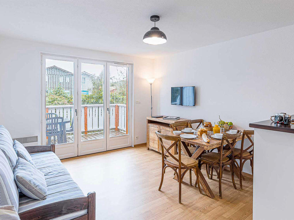 Résidence « Les Rives Marines ». 130 appartements dans la résidence. À 300 m de la rivière. En commun: piscine chauffée, cloturée (12 x 10 m, disponibilité saisonnière: 01.Mai. – 30.Sep.). Ping-pong, terrain de pétanque. Infrastructures de la résidence: réception, Connexion WIFI, réduit pour bicyclettes, lave-linge, sèche-linge (en commun, en sus). Service boulangerie. Place de parking. Magasins 500 m, supermarché 4 km, plage de sable « Plage de la Hume » 4 km. Port plaisance 500 m, terrain de golf (18 trous) 10 km. Attractions à proximité: Port de plaisance du Teich 500 m, Réserve ornithologique 400 m, la plage de La Hume 4 km, côte de Cap Ferret & Arcachon, Dune du Pilat, Bordeaux 53 km. Région de randonnées: Parc Naturel des Landes de Gascogne. Veuillez noter: La photo ne montre qu’un exemple de location de vacances. Les locations peuvent également se différencier par leur superficie, la disposition des pièces et leur équipement.