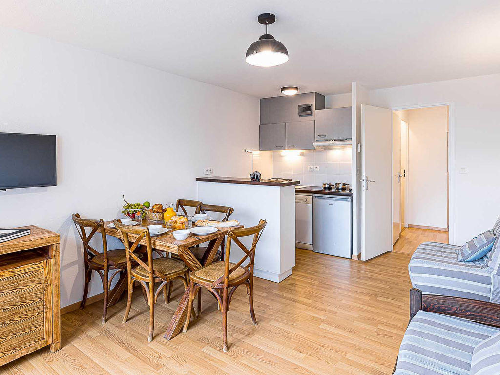 « 2 pièces 4 BBQ Les Rives Marines », apt 2 pièces 36 m2. Aménagement agréable: séjour/salle à manger avec 1 divan-lit double et TV à louer. 1 chambre avec 1 grand-lit (1 x 140 cm, longueur 190 cm). Coin cuisine (lave-vaisselle, 4 plaques vitrocéramiques, grille-pain, bouilloire électrique, micro-ondes, cafetière électrique). Salle de bains, WC séparé. Chauffage électrique. Terrasse. Meubles de terrasse.