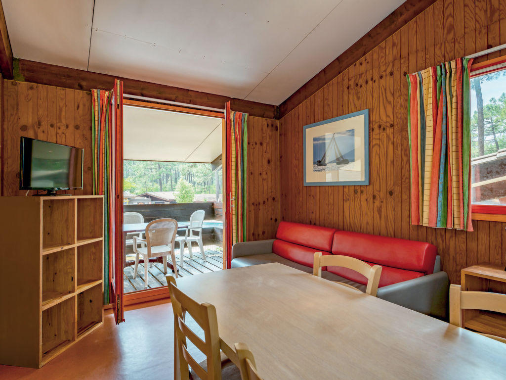 Maubuisson à 5 km de Carcans-Plage: Village de vacances simple « Les Sentes ». À 2 km du centre de Maubuisson, à 5 km du centre de Carcans-Plage, à 14 km du centre de Lacanau-Océan, situation tranquille, à 5.5 km de la mer, à 2 km du lac, à 2 km de la plage, dans la forêt. En commun: piscine cloturée (140 m2, disponibilité saisonnière: 01.Jul. – 31.Aou.). WC dans l’espace piscine, douche extérieure, ping-pong, terrain de pétanque, espace de jeux pour les enfants. Infrastructures de la résidence: réception, bar, lave-linge, sèche-linge (en commun, en sus). Place de parking. Magasins 2 km, supermarché 11 km, restaurant 2 km, plage de sable « Carcans-Plage » 5.5 km, baignade en lac « Maubuisson » 2 km. Terrain de golf (18 trous) 15 km, ecole de surf 5.5 km, ecole de voile 2 km, chemins de randonnées pédestres depuis la maison 10 m, piste cyclable 50 m. Attractions à proximité: Pauillac (route des vins) 40 km, Bordeaux 60 km, Soulac / Cap-Ferret 70 km, Royan (par le bac) 80 km. Veuillez noter: complexe de vacances sans voiture. Déchargement et chargement des bagages à la location de vacances. La photo ne montre qu’un exemple de location de vacances.