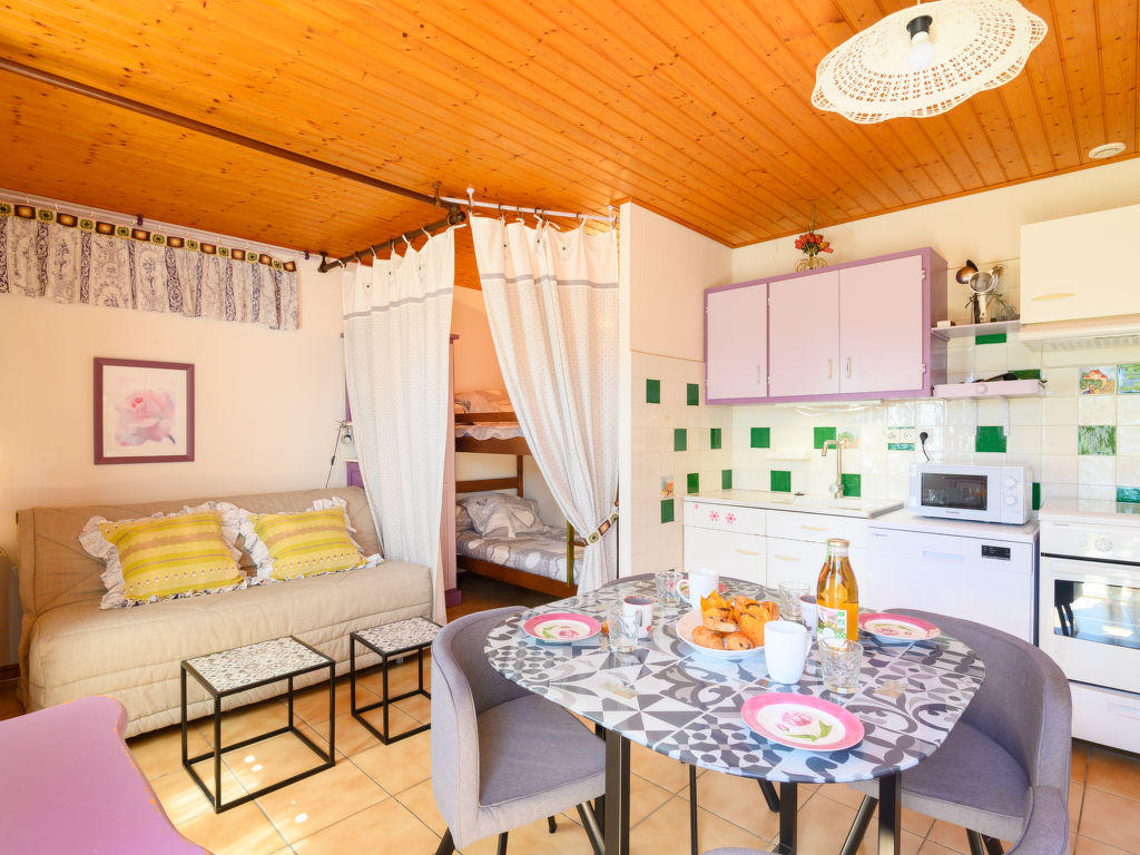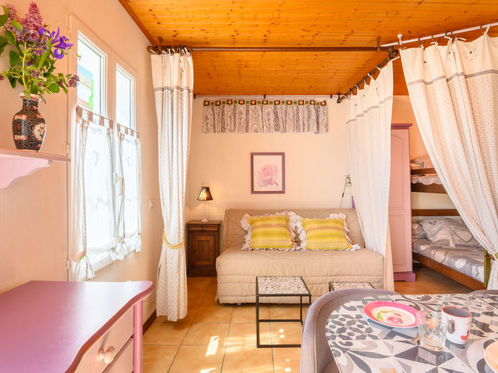 « Lilas », maison mitoyenne studio 22 m2. Logement idéal pour 2 adultes + 1 enfant. Aménagement agréable: séjour/salle à manger avec 1 divan-lit double (160 cm, longueur 200 cm), 2 lits superposés (90 cm, longueur 190 cm), coin repas, coin-cuisine et TV (écran plat). Sortie sur le jardin, sur la terrasse. Coin cuisine (4 plaques de cuisson, four, lave-vaisselle, grille-pain, bouilloire électrique, micro-ondes, congélateur, cafetière électrique). Douche/WC. Chauffage électrique. Terrasse, situation sud, tonnelle. Meubles de terrasse. A disposition: lave-linge, sèche-linge, fer à repasser. Internet (Connexion WIFI, gratuit). Place de parking près de la maison. Veuillez noter: maximum 1 animal/ chien autorisé. Entrée privée, détecteur de fumée. La répartition des lits est flexible: Il y a plus de couchages que le nombre maximum de personnes admis dans la location. Ce nombre maximum doit néanmoins être respecté. Annonce d’un particulier (art 155, IV du CGI).