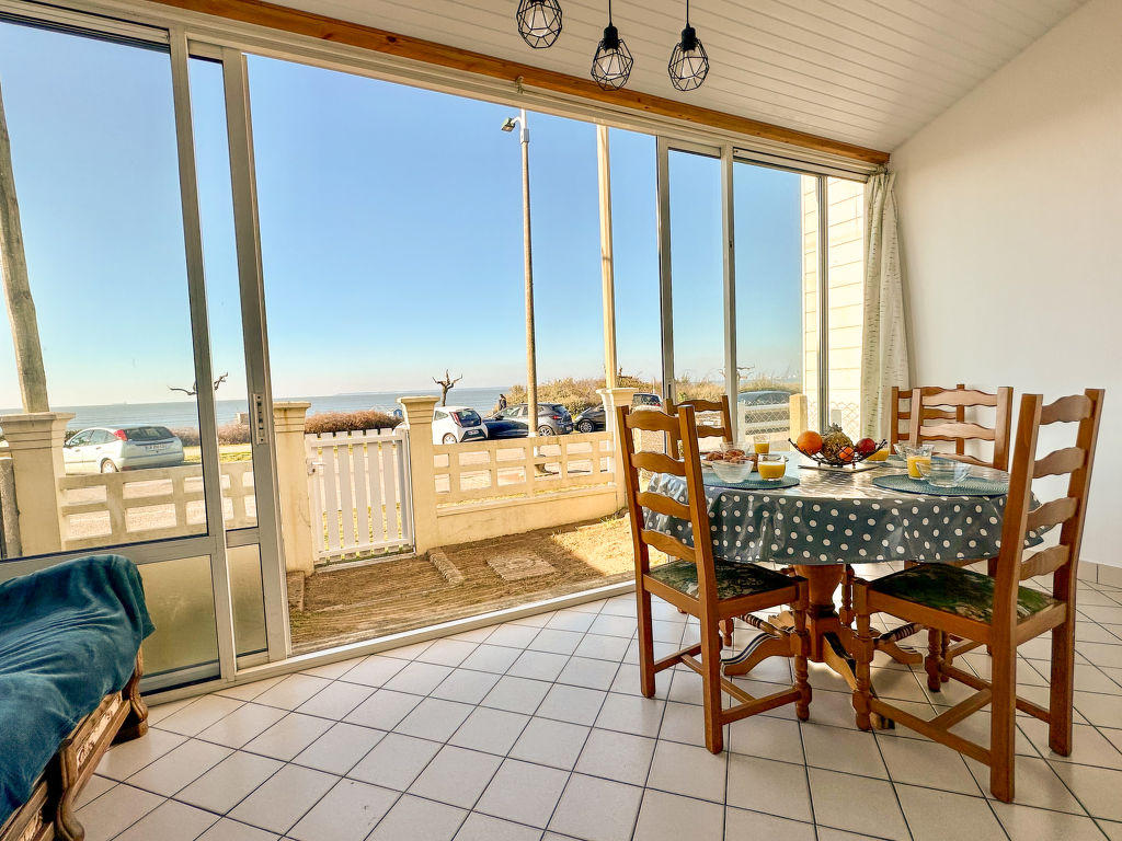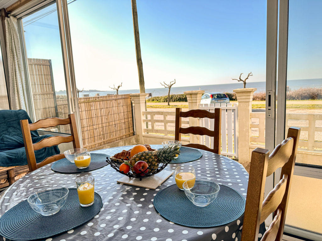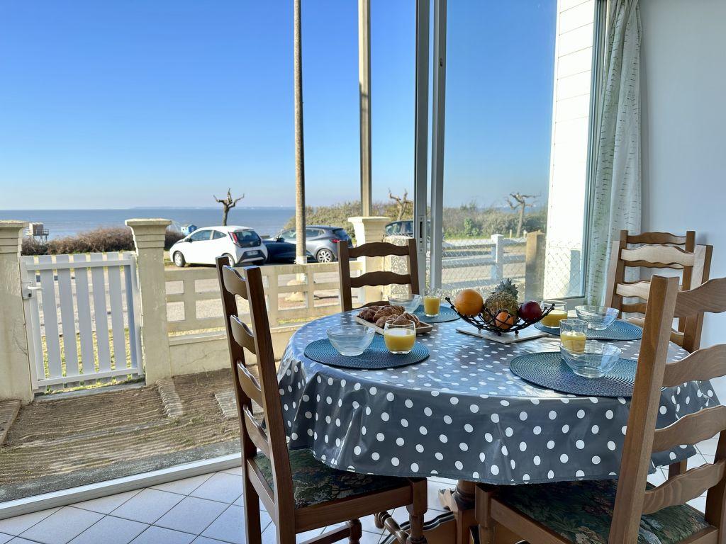 « Maison Front de Mer », maison mitoyenne 4 pièces 65 m2 sur 2 niveaux, situation ouest. Logement idéal pour 4 adultes + 2 enfants. Séjour/salle à manger avec cheminée et TV (écran plat). Sortie sur la véranda. Petite cuisine ouverte dans l’entrée (4 plaques de cuisson, lave-vaisselle, grille-pain, bouilloire électrique, micro-ondes, cafetière électrique). Baignoire sabot, WC séparé. À l’étage supérieur: 1 chambre avec 1 grand-lit (1 x 140 cm, longueur 200 cm). 1 chambre d’enfants avec 1 x 2 lits superposés (90 cm, longueur 190 cm). 1 petite chambre avec 1 grand-lit (1 x 140 cm, longueur 200 cm). Chauffage électrique. Très belle vue panoramique sur l’océan. A disposition: lave-linge. Internet (Connexion WIFI, gratuit). Veuillez noter: maximum 1 animal/ chien autorisé. Détecteur de fumée. Annonce d’un particulier (art 155, IV du CGI). 44182000050NM