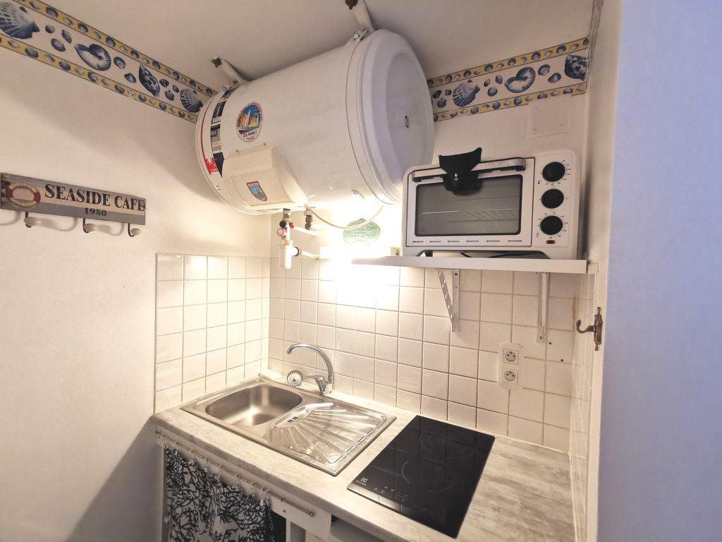 Appartement sur 2 niveaux 2 pièces 45 m2 au 1er étage. Logement idéal pour 2 adultes + 1 enfant. Aménagement confortable et avec beaucoup de bois: séjour/chambre à coucher avec 1 lit (140 cm, longueur 190 cm), table pour les repas et TV (écran plat), volet roulant électrique. Petite cuisine (2 plaques de cuisson, mini-four, bouilloire électrique, micro-ondes, cafetière électrique). Douche/WC. Chauffage électrique. À l’étage supérieur: 1 grande chambre, mansardée, ouverte avec 1 grand-lit (1 x 140 cm, longueur 190 cm). Superbe vue sur la mer. A disposition: lave-linge, sèche-linge, sèche-cheveux. Internet (Connexion WIFI, gratuit). Veuillez noter: logement non-fumeur. 1 animal/ chien de petite taille autorisé. Sans ascenseur. 3528800141309