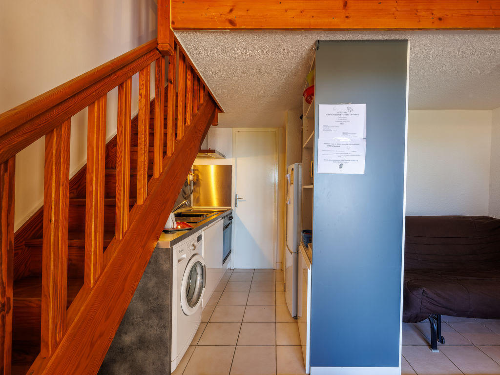 « Petite Cigale », maison jumelée 2 pièces 55 m2 sur 2 niveaux. Aménagement simple et moderne: séjour/chambre à coucher avec véranda avec 1 divan-lit double (160 cm, longueur 200 cm), table pour les repas, TV (satellite), radio, lecteur CD et DVD. Sortie sur la terrasse. Coin cuisine (four, 2 plaques vitrocéramiques, grille-pain, bouilloire électrique, micro-ondes, congélateur, cafetière électrique). Douche/WC. À l’étage supérieur: 1 chambre, mansardée avec 1 grand-lit (140 cm, longueur 190 cm). Galerie mansardée, ouverte avec 1 lit (90 cm, longueur 190 cm). Chauffage électrique, air-conditionné. Terrasse 30 m2. Meubles de terrasse, barbecue (portable), chaises longues (4), réduit. Belle vue sur la mer et la localité. A disposition: lave-linge, lit bébé. Internet (Connexion WIFI, gratuit). Place de parking (cloturée, 2 Voitures) près de la maison. Veuillez noter: maison non-fumeur. Maximum 1 animal/ chien autorisé. TV seulement FR, DE. Détecteur de fumée. La répartition des lits est flexible: Il y a plus de couchages que le nombre maximum de personnes admis dans la location. Ce nombre maximum doit néanmoins être respecté. Au lieu d’une chambre fermée, des espaces de couchage sont situés dans une zone ouverte (galerie, alcôve…).