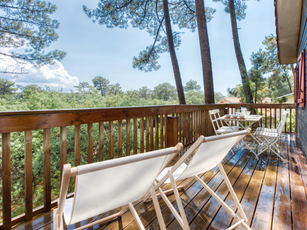 Chalet « Picasso ». 2 km du centre, à 1 km de la mer, à 1 km de la plage. A usage privé: terrain 400 m2. Magasins 1 km, supermarché 850 m, restaurant 1 km, arrêt de bus « Salle l’Escoure Océan » 1 km, plage de sable 600 m. Terrain de golf (18 trous) 4 km, tennis 3 km, centre équestre 15 km.